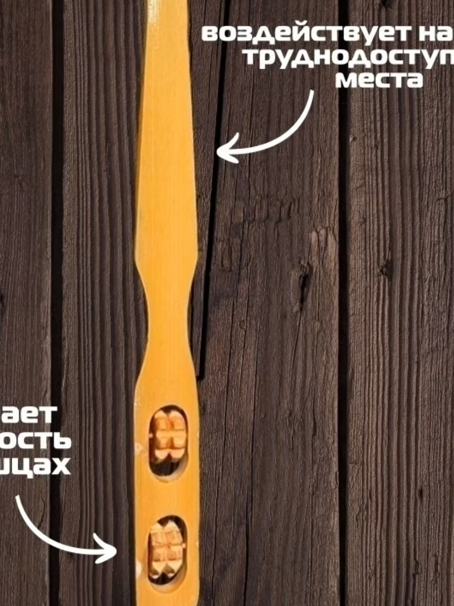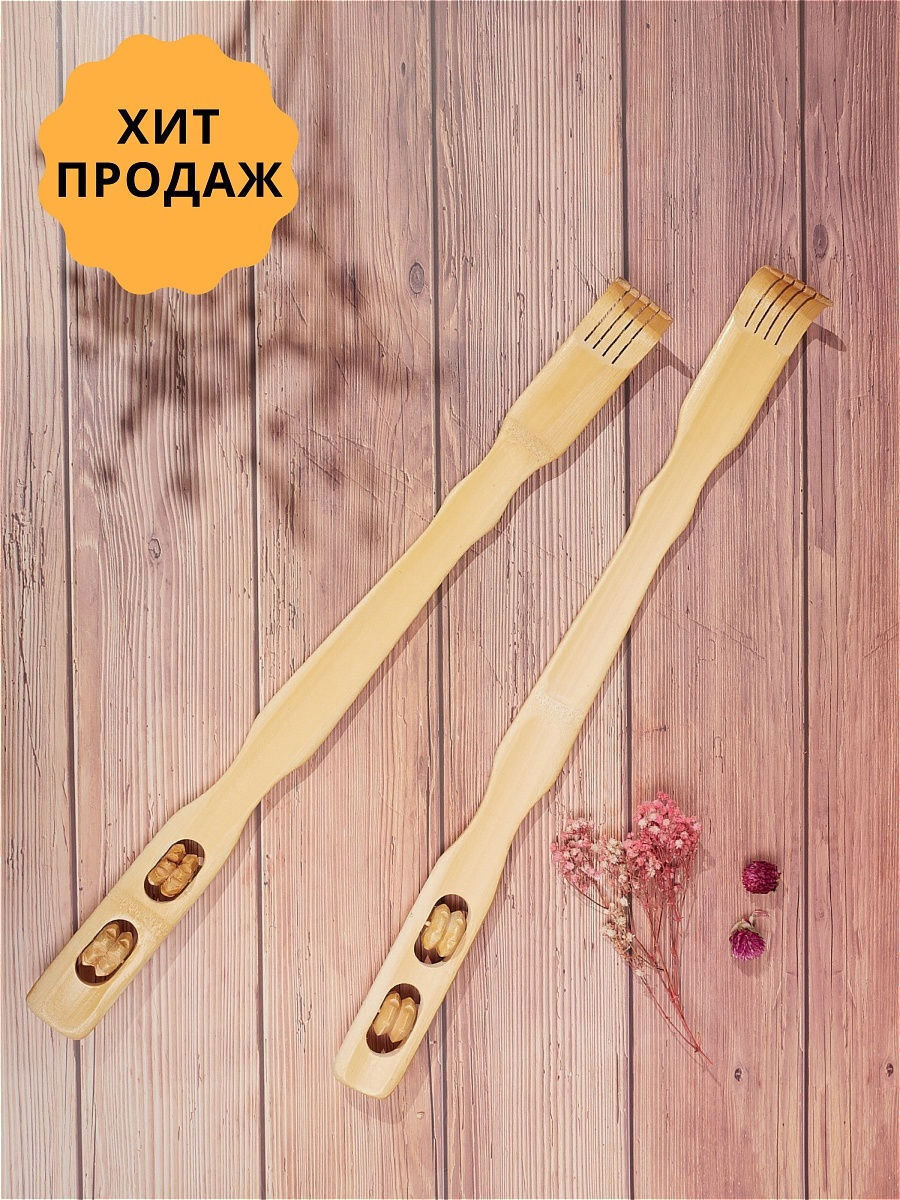 Конструкция массажера-чесалки, предусматривающая наличие достаточно длинной ручки, предоставляет возможность массажировать самостоятельно мало доступные участки тела (например, спину).