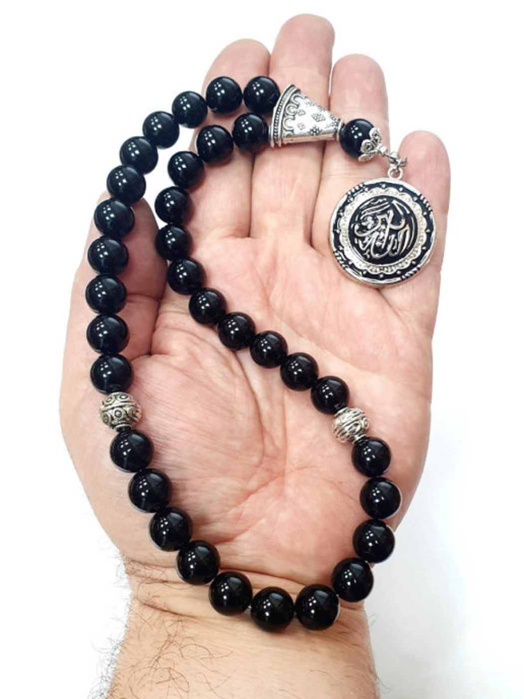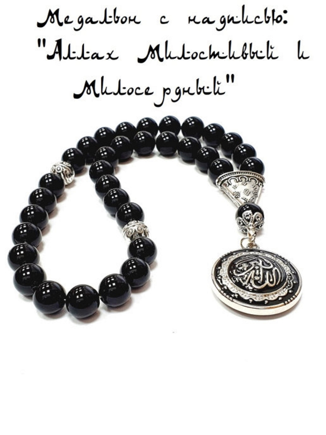 Комплектация:Четки, подарочный бархатный мешочек Описание:Четки мусульманские выполнены из агата натурального, 33 камня, с медальоном "Аллах Милостивый и Милосердный". Диаметр камня:12мм. Длина четок с медальоном:29см, Длина по окружности: 38-39см. Камни