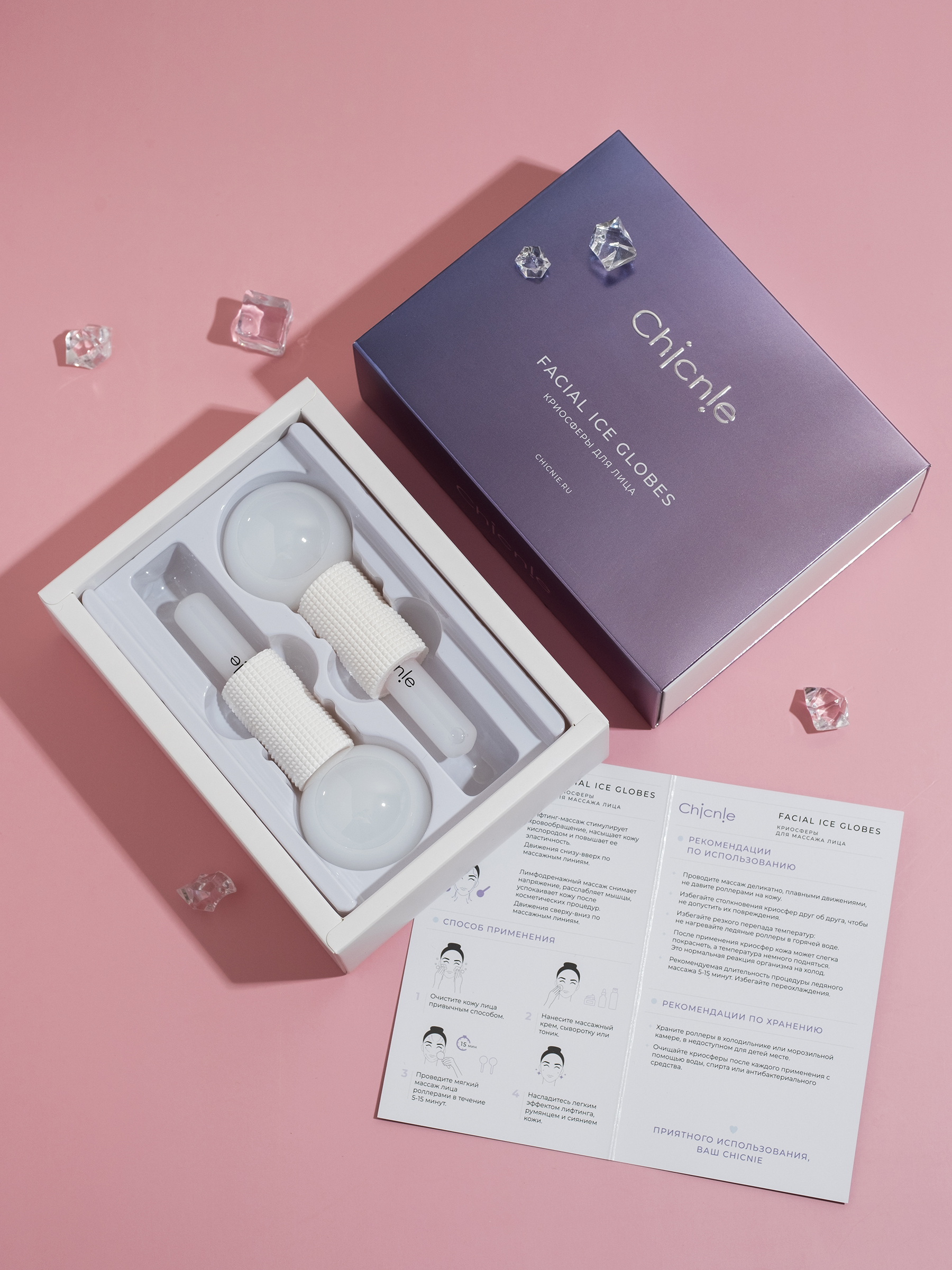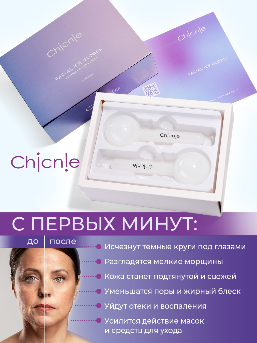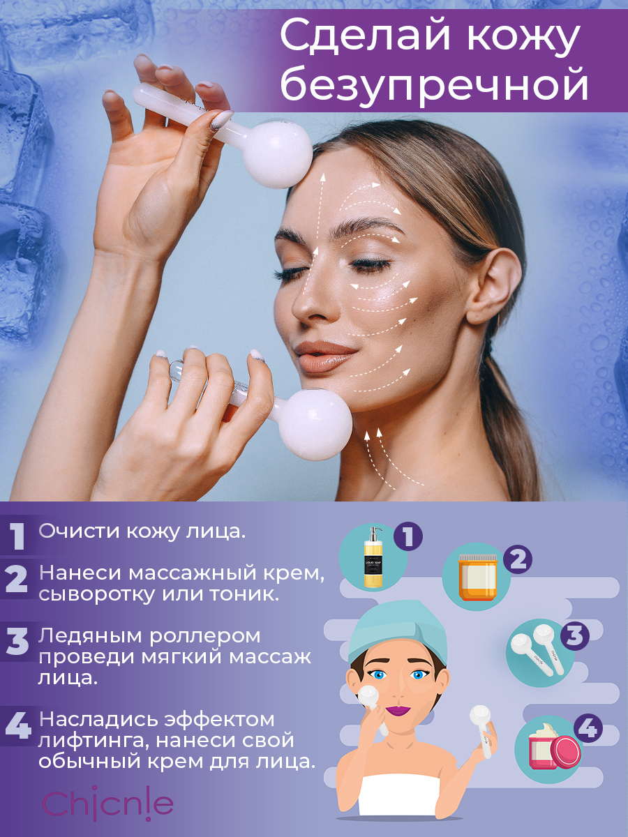 Роллеры для лица Chicnie Facial Ice Globes, 2шт (Криосферы для лица). Массаж лица ледяными роликами - долгожданная замена долгих и дорогих бьюти-процедур косметологии на приятный косметический уход за кожей у себя дома. Ролик для лица подарит вашей коже с