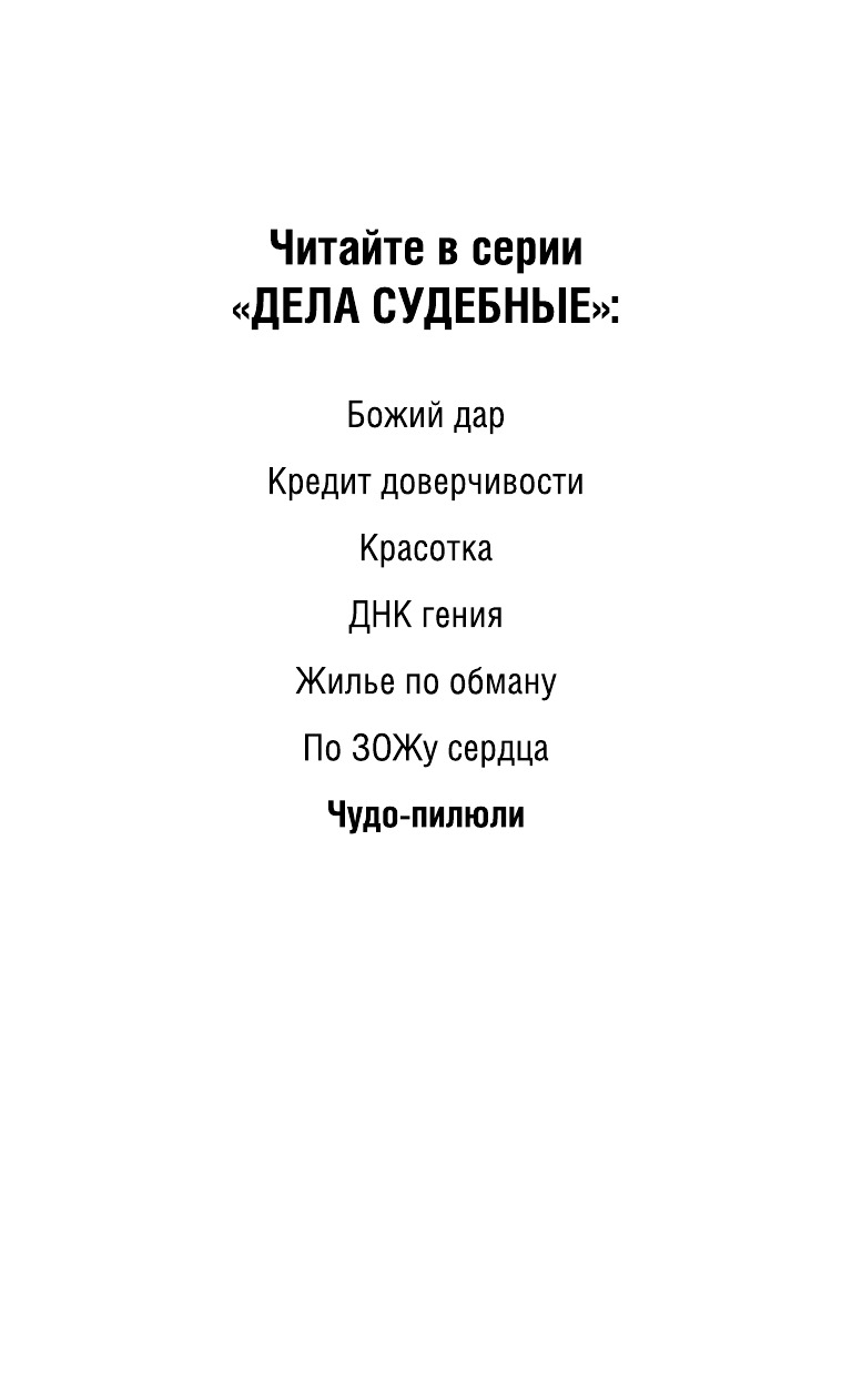 В свет выходит новый остросюжетный роман звездного дуэта Татьяны Устиновой и Павла Астахова из цикла «Дела судебные» — «Чудо-пилюли». Вечная молодость и красота — мечта многих людей. Но на этом зачастую наживаются мошенники. Стала жертвой обмана и Натка,