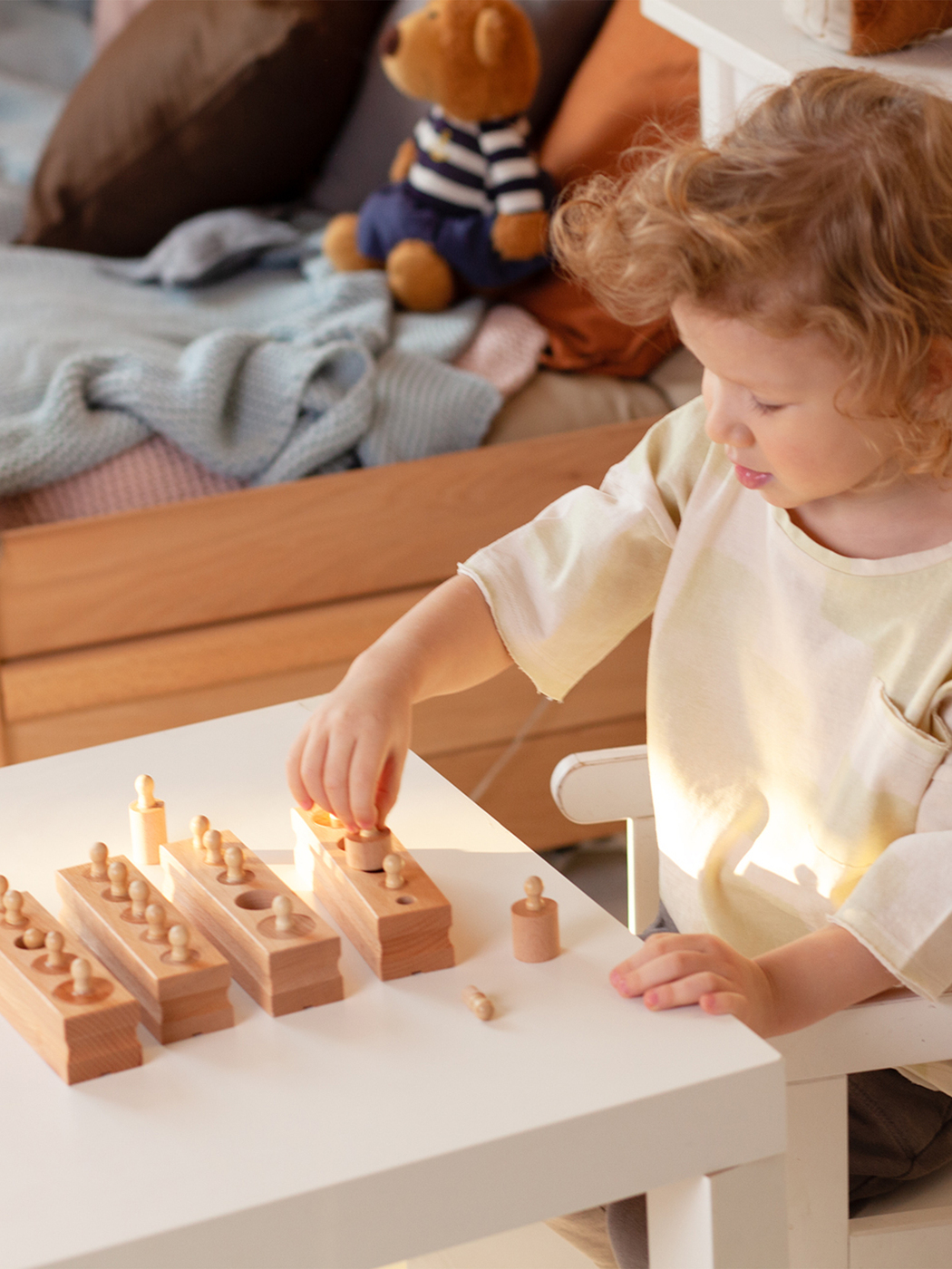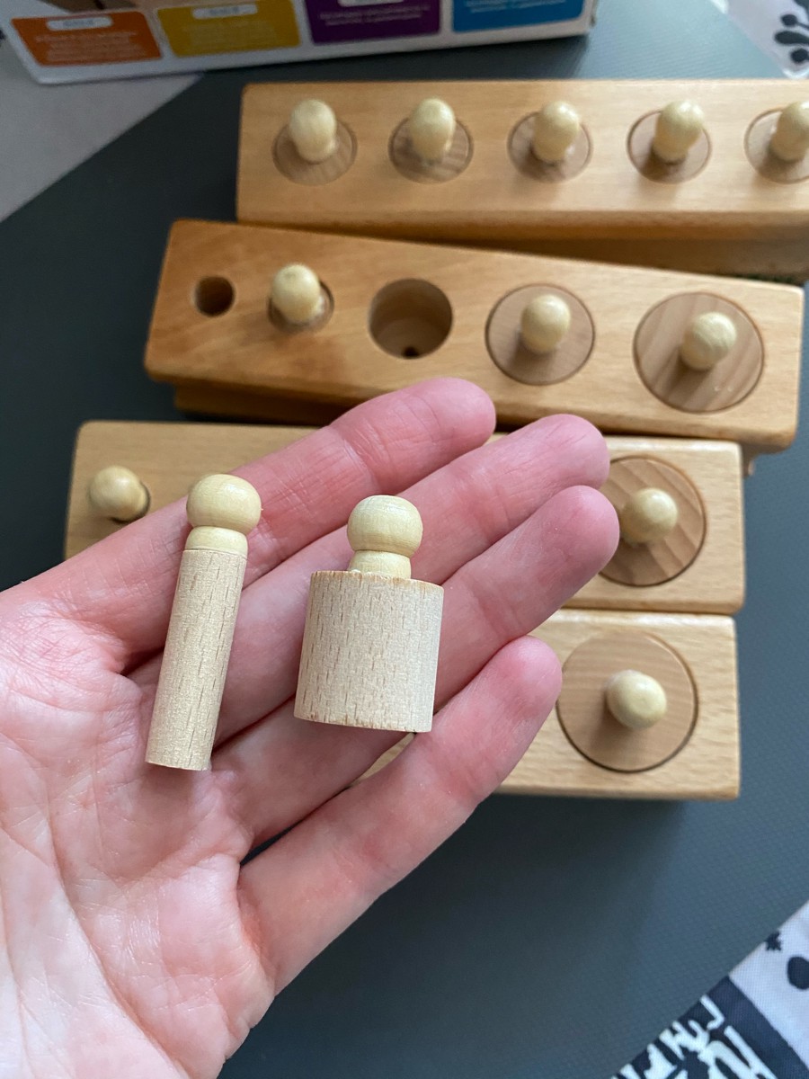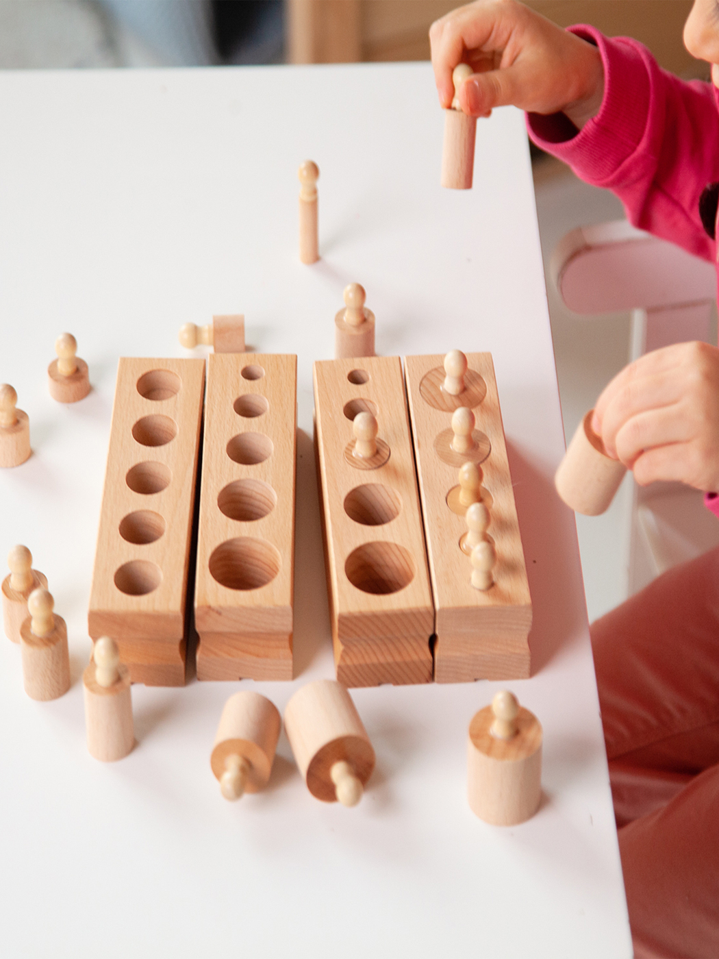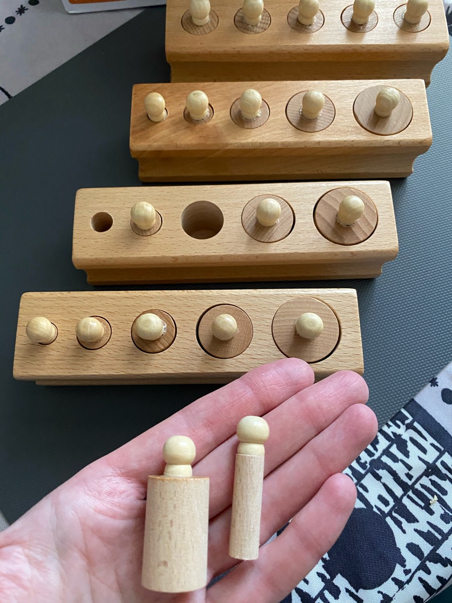 Комплектация:В набор входят 4 блока цилиндров разной высоты и диаметров, заводская фирменная упаковка.Описание:Самый популярный развивающий набор по методике Марии Монтессори - чудо цилиндры .В блоке А все цилиндры имеют одинаковый диаметр и равномерно ум