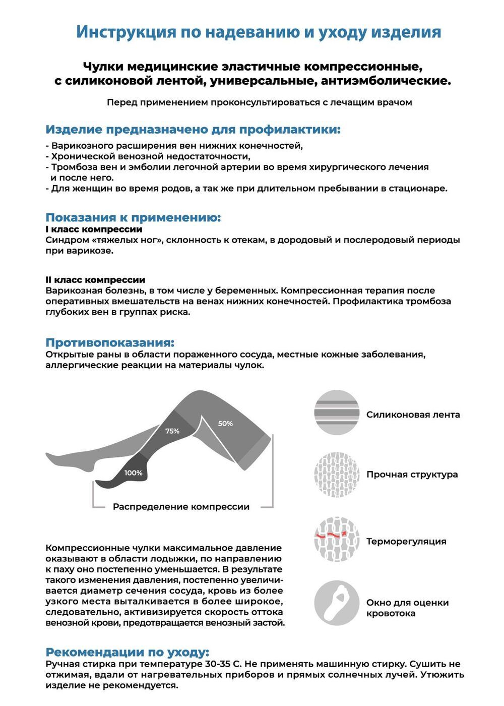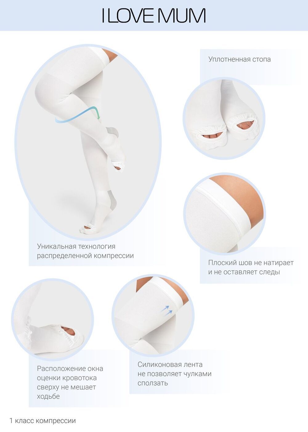 Универсальные компрессионные чулки для беременных предназначены для профилактики тромбоза вен во время хирургического лечения, родов и длительного пребывания в стационаре.√ Предотвращает венозный застой;√ Удобное расположение окна оцен
