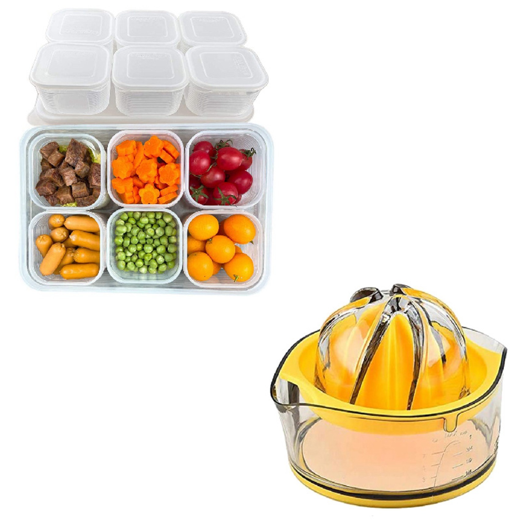 Set2: 1 x Контейнер для хранения продуктов питания + 1 х Ручной соковыжималки Премиум Качество: апельсиновый скважин из пластика, противоскользящей не маркирующей силиконовой основы, убедитесь, что может быть длиться долго. быстро Безбеспечение: вырезат