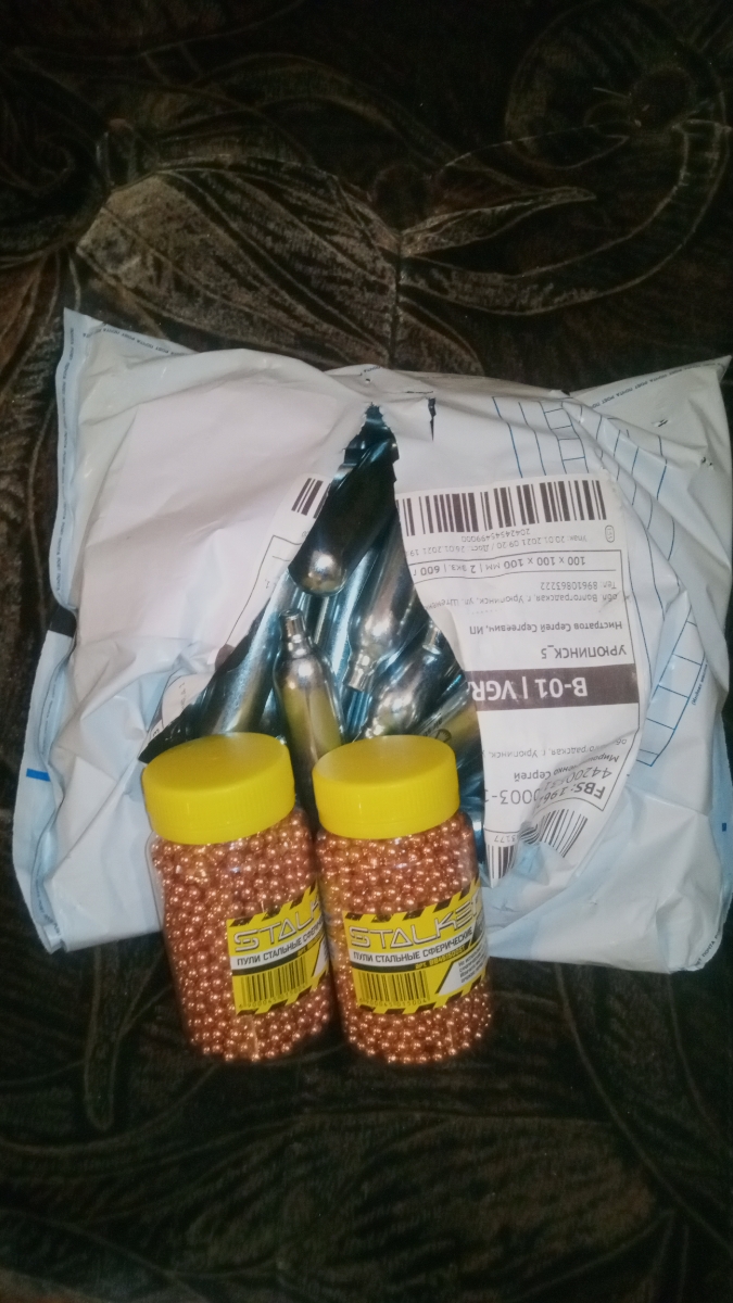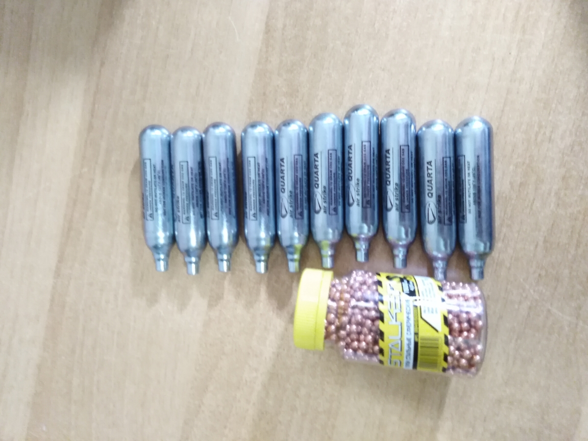 Комплектация:Баллончики CO2 "Quarta" 20шт. + шарики "Stalker" 1500шт.Описание:Баллончики CO2 Quarta 12 грамм предназначены для использования в качестве источника энергии в пневматических пистолетах и винтовках, работающих на углекислом газе. Баллонч