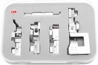 Набор состоит из нитевдевателя и 4-х лапок для оверлоков Comfort 05-15. - Лапка для потайной строчки. Лапка применяется для пошива поясов трикотажных изделий и выполнения невидимых строчек на изделиях. - Лапка для сосбаривания. Лапка применяется дл