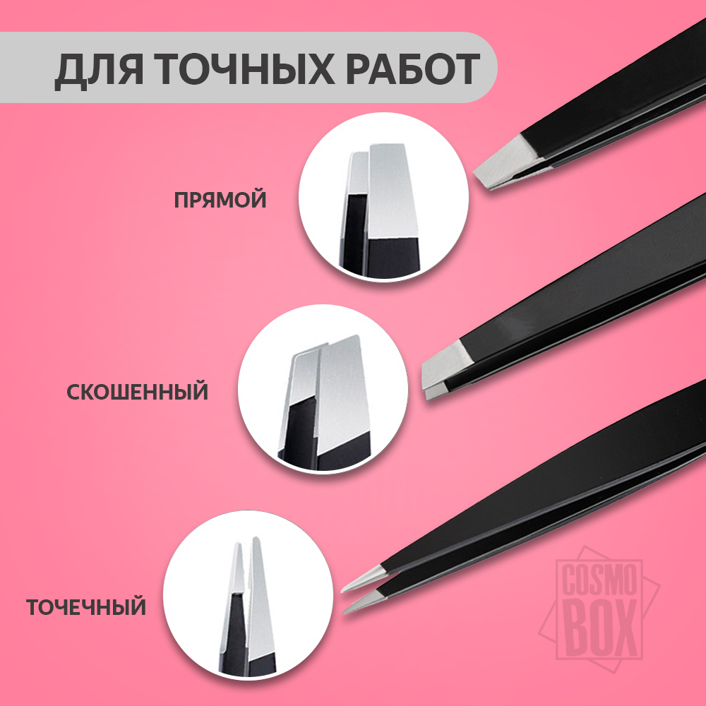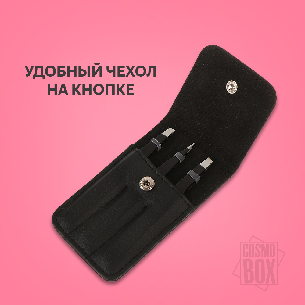 Набор профессиональных пинцетов для бровей в стильном чехле от CosmoBox.Пинцеты изготовлены из нержавеющей стали, что делает их долговечными для использования. Набор состоит их 3-х пинцетов:Прямой кончикСкошенныйТочечныйПинцеты обеспечивают надежный захва