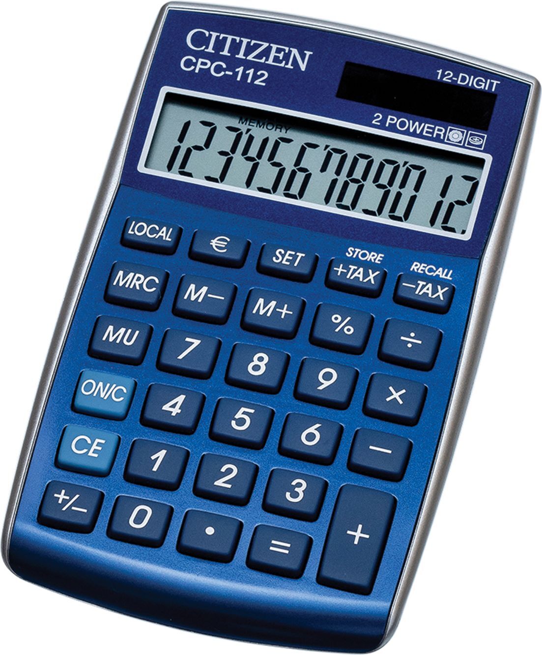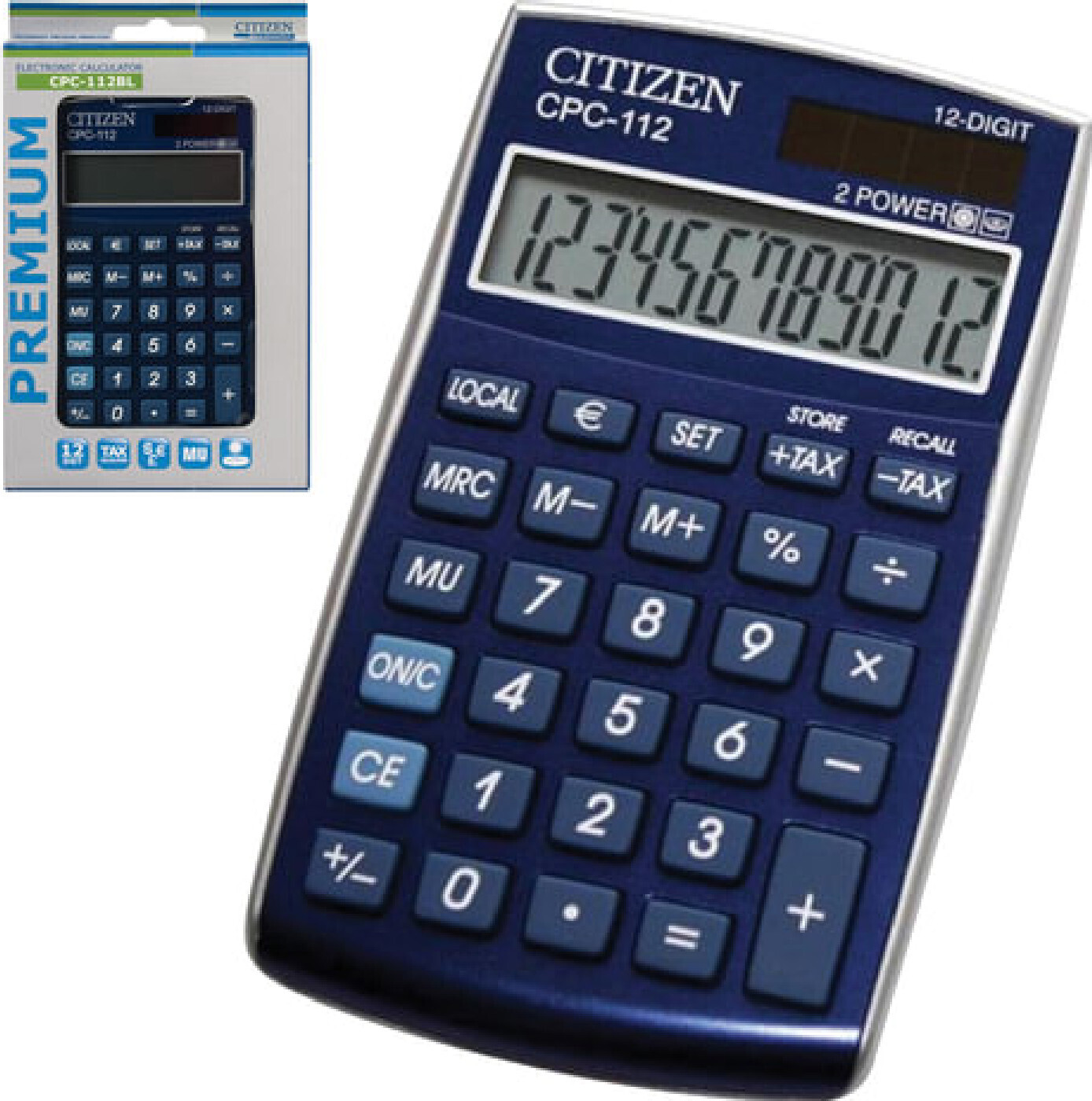 CPC-112BLWB Калькулятор CITIZEN карманный CPC-112BLWB, 12 разрядов, двойное питание, 120х72 мм, синий