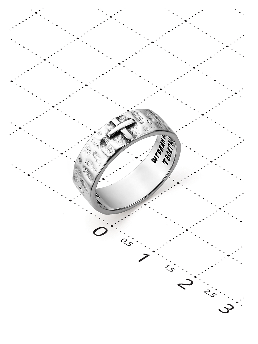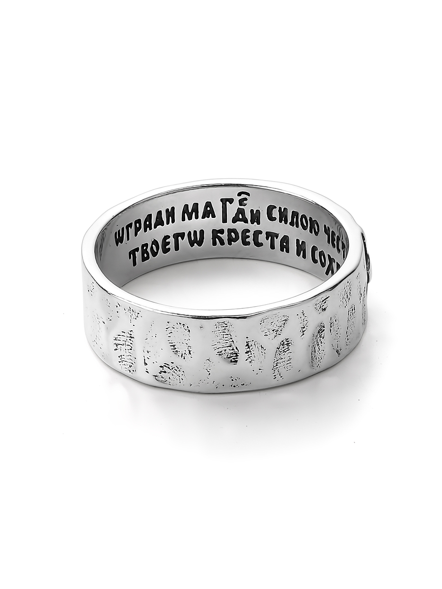 Кольцо православное, выполнено из серебра 925 пробы, покрытое оксидом. На внутренней стороне кольца нанесена Молитва Честному Животворящему Кресту. "Никто из нечистых демонов не в силах будет стоять вблизи тебя, видя тот меч(крест), от которого он принял
