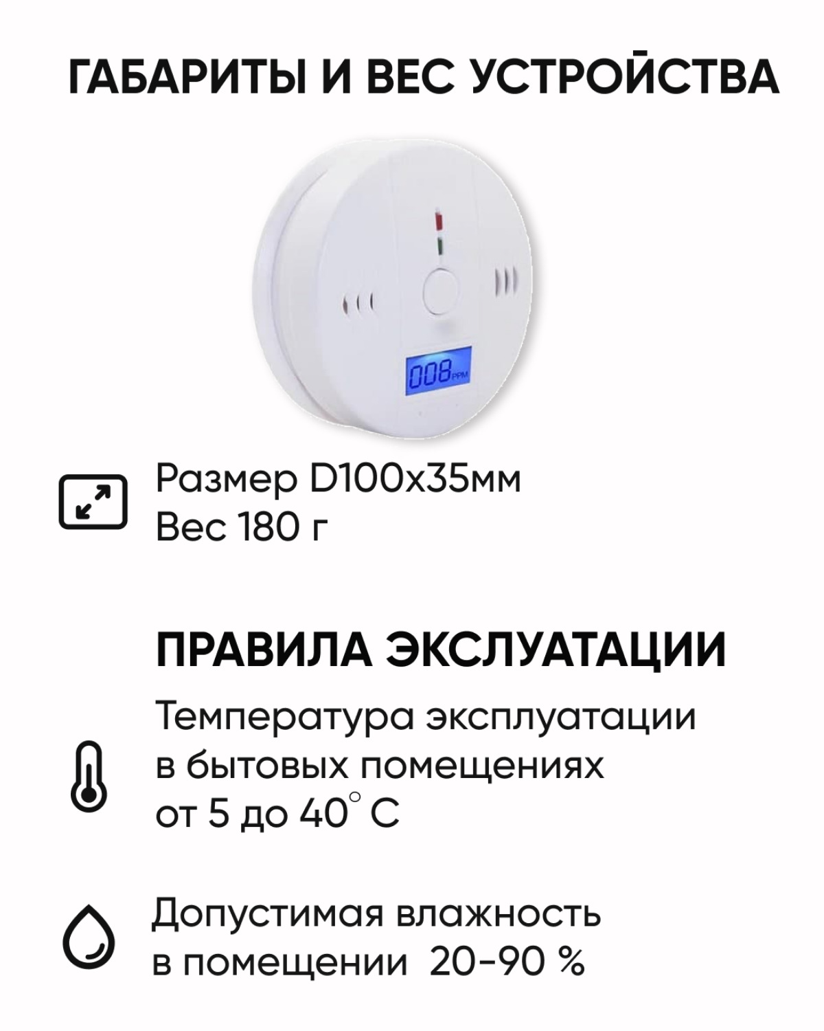 Датчик угарного газа (CO) идеальное устройство для защиты вашей семьи от опасности угарного газа. Данный детектор углекислого газа необходим для дома, квартиры, бани, гаража, палатки и др. Благодаря LCD-дисплею удобно отслеживать концентрацию угарного газ