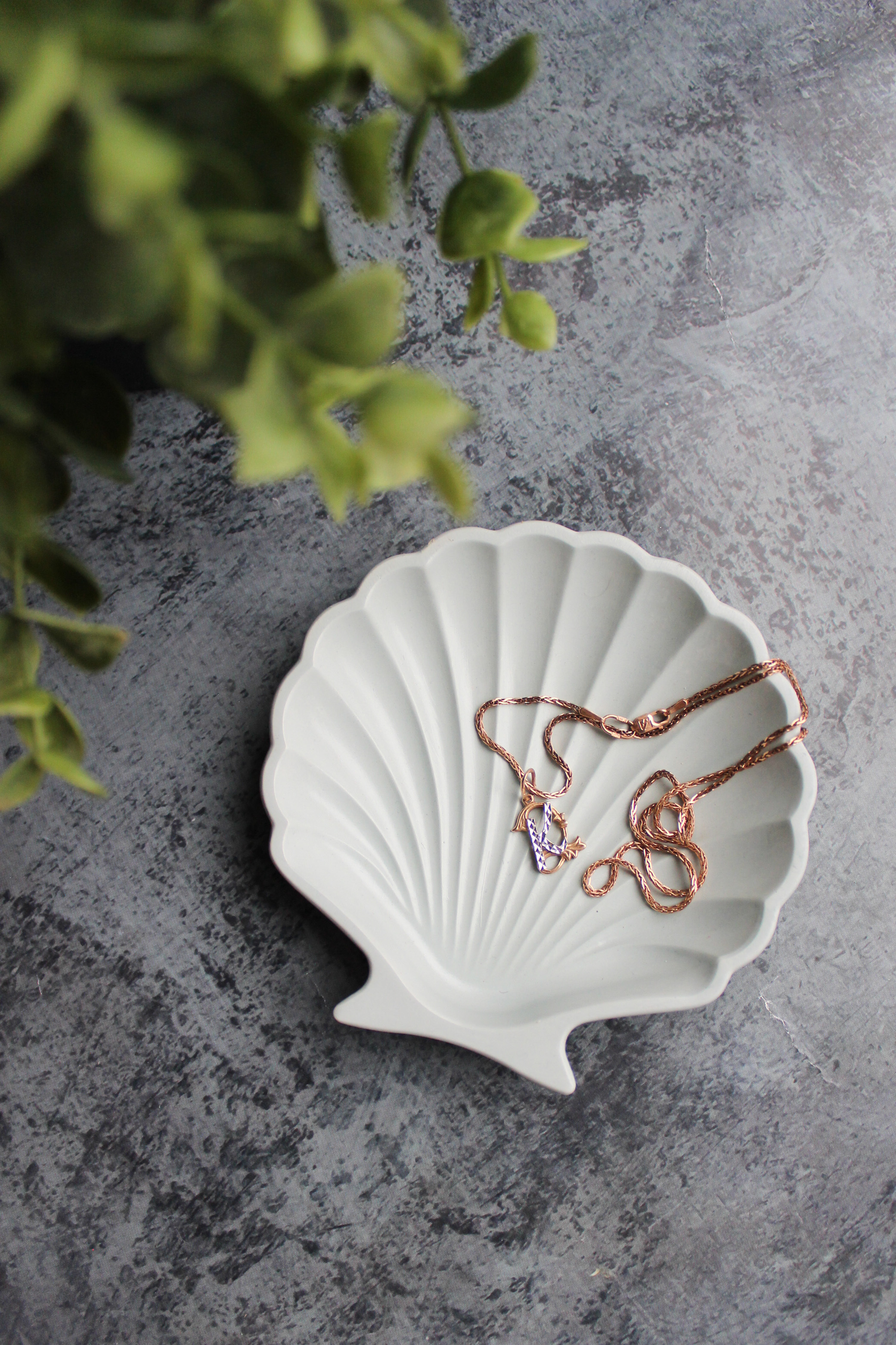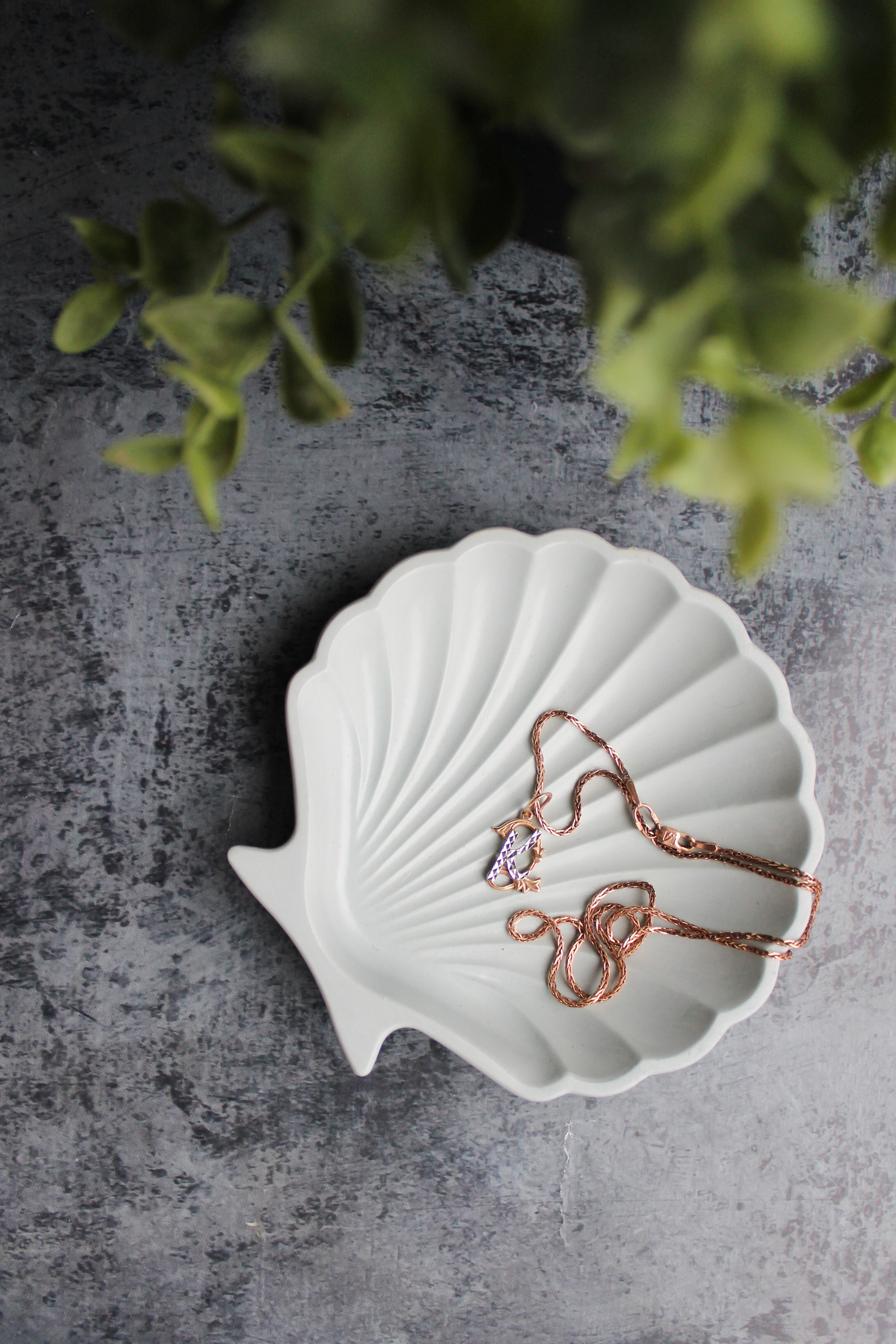 Декоративная подставка для украшений Ракушка отлично впишется в любой интерьер, за счет лаконичного дизайна. В ней можно хранить ценные вещи: кольца, серьги, цепочки, браслеты. Можно использовать в качестве фотореквизита. Отличный вариант подарка для любо