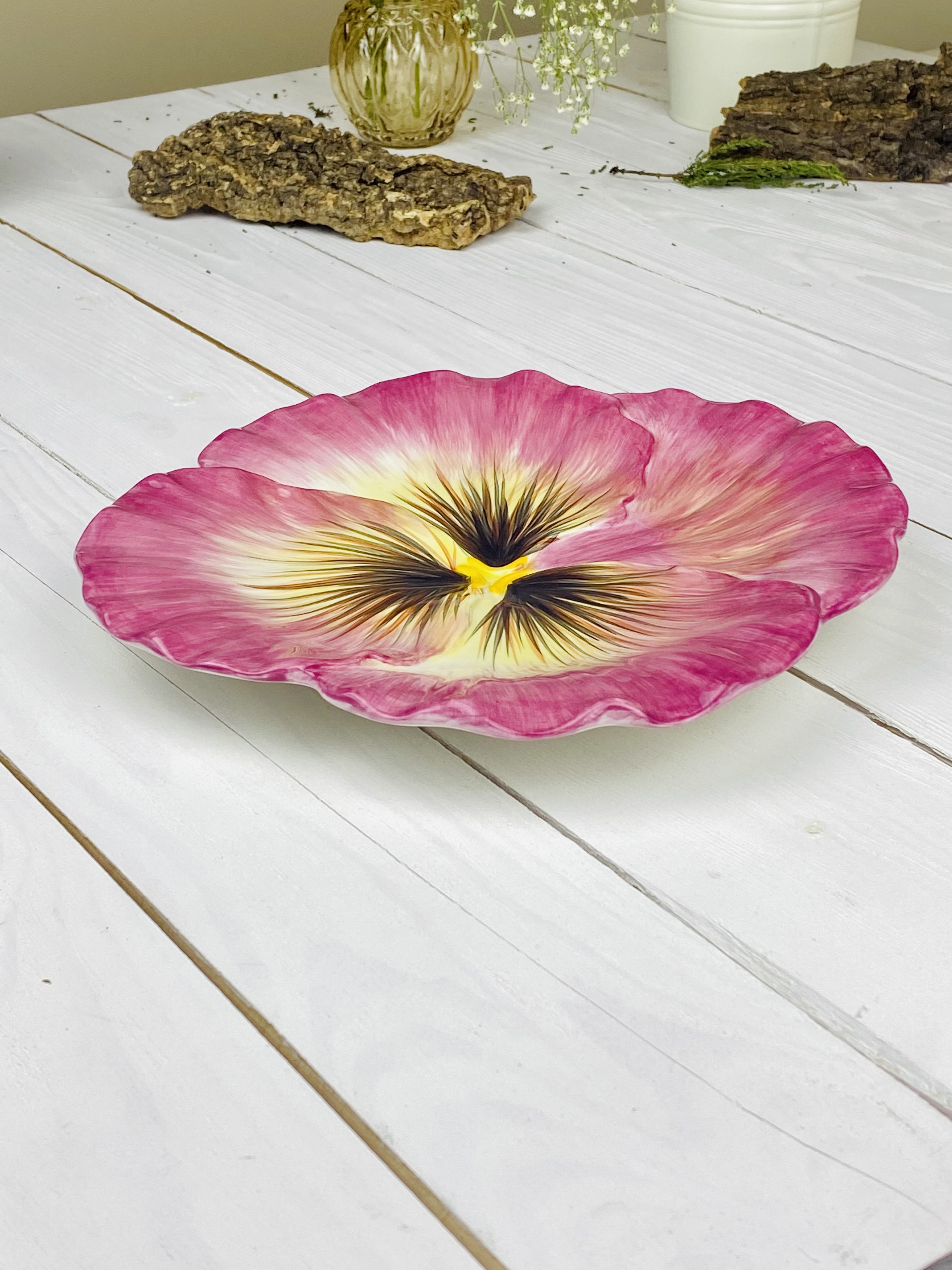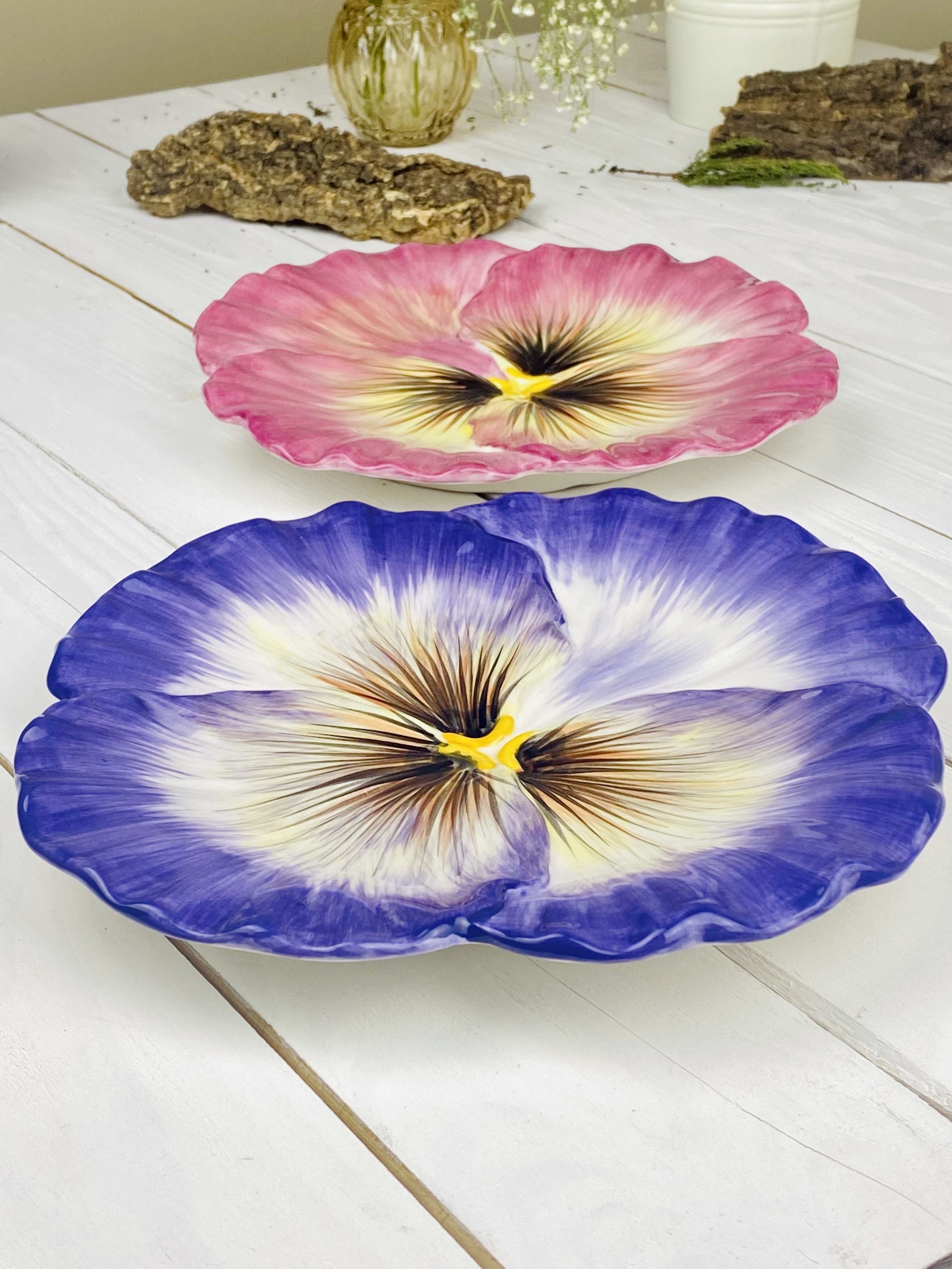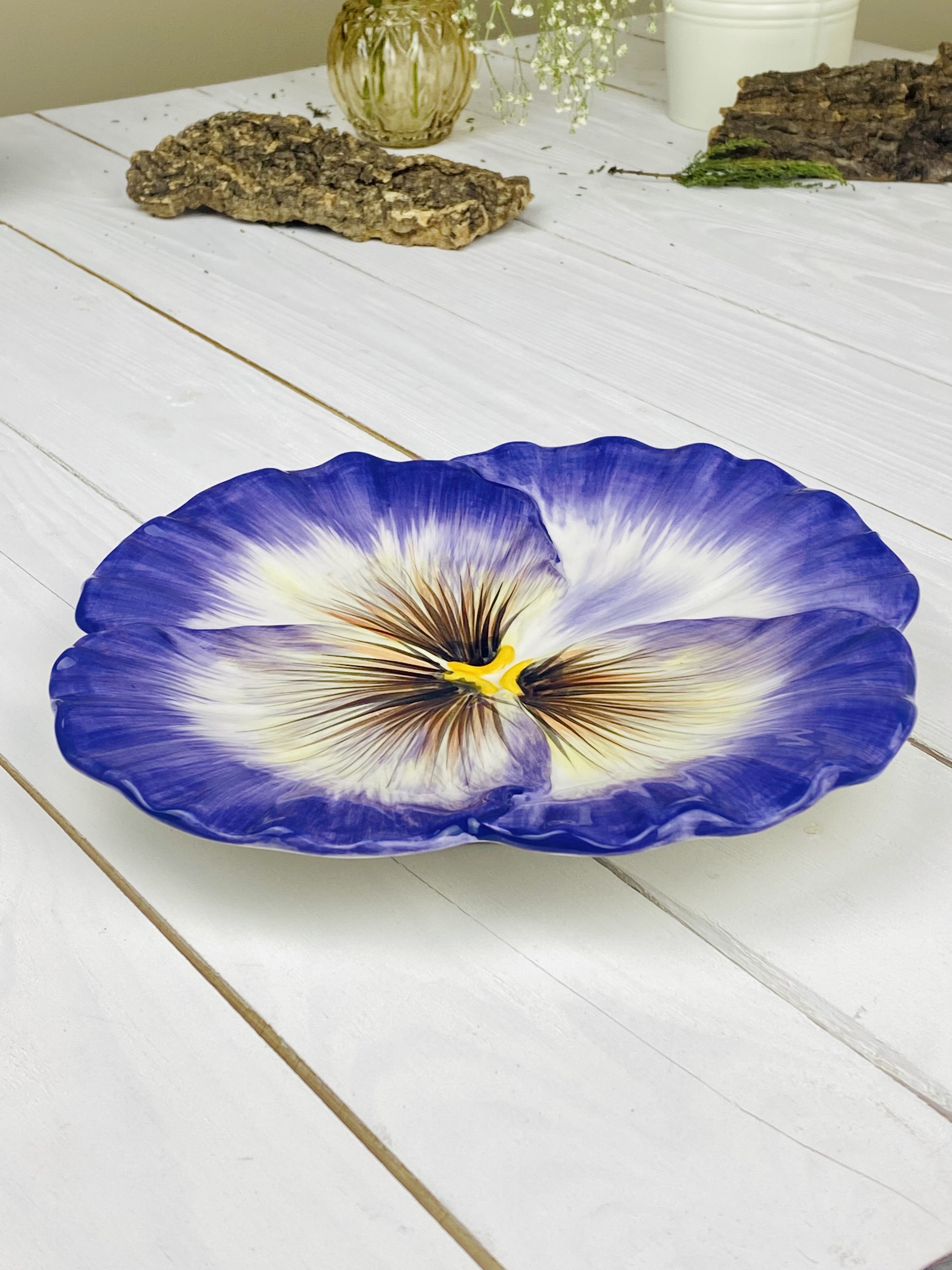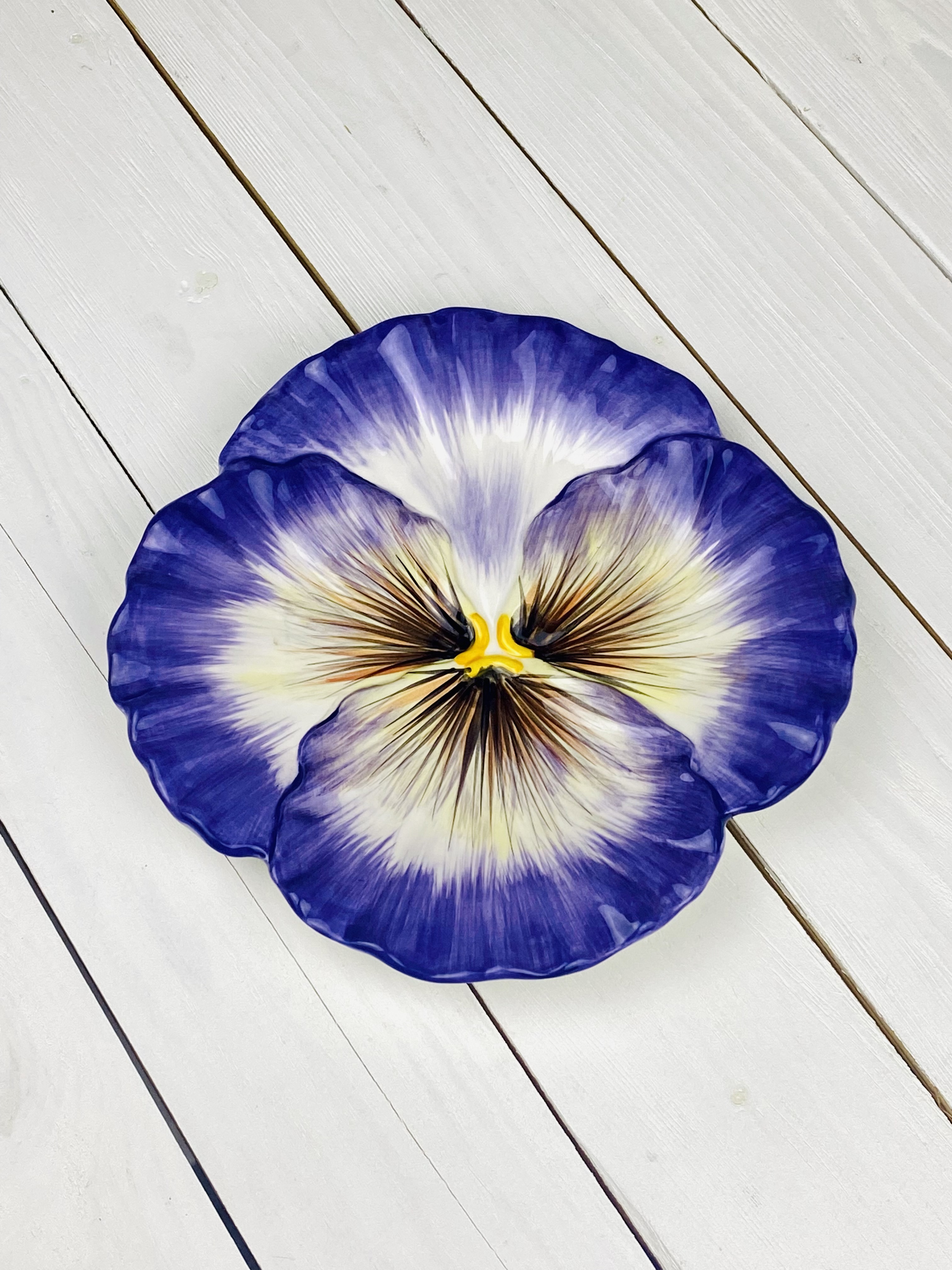 Набор из 2-х блюд для пирожных в виде цветов Анютиных глазок.Рельефные блюда в форме цветка с текстурированными лепестками, выполнены из керамики и расписаны вручную в светлые весенние оттенки.Изделия нельзя использовать в микроволновой печи и мыть в посу