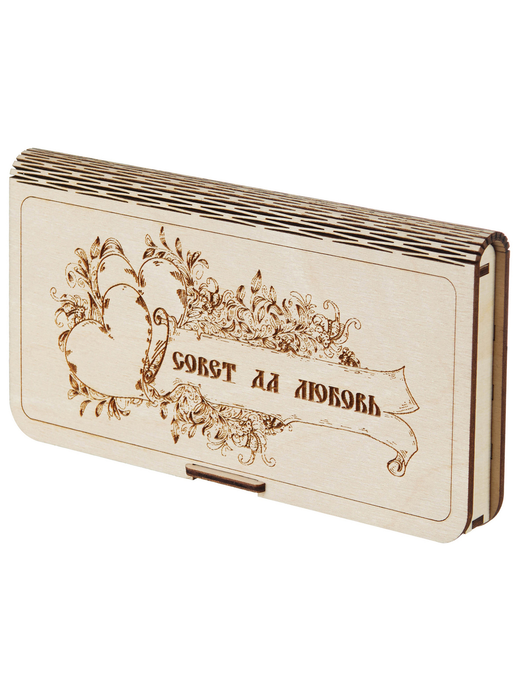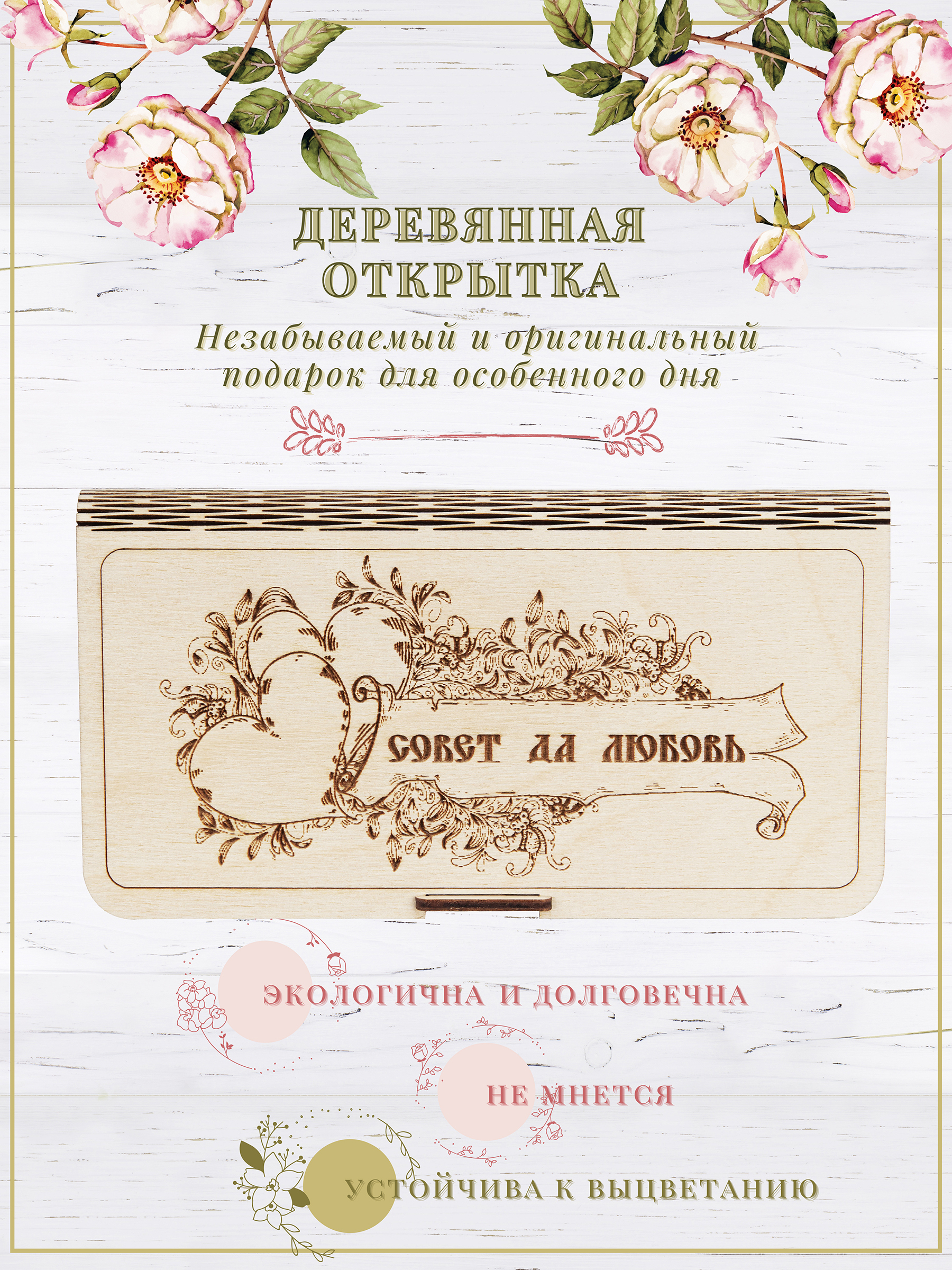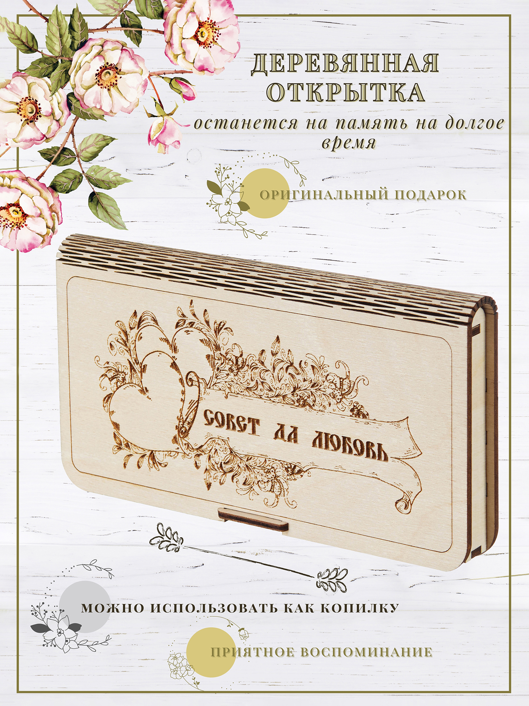 ЦветДеревянная открытка-конверт для денег "Совет да любовь"