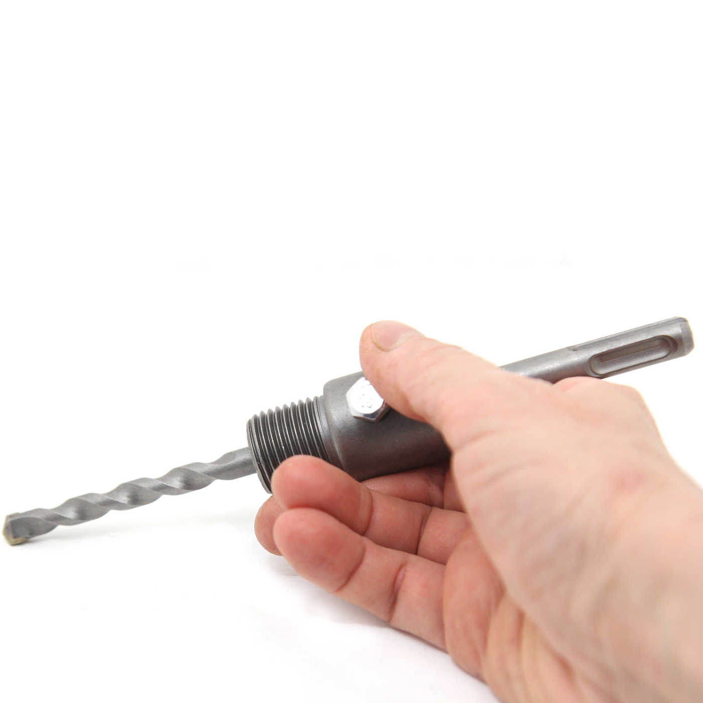 Держатель SDS-plus для твёрдосплавной коронки Vira Держатель для коронки предназначен для использования с перфораторами с патронами SDS-plus. В комплекте есть бур для сверления отверстий в бетоне, кирпиче и камне. Держатель предназначен для твёрдосплавны