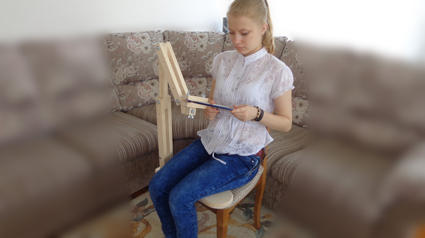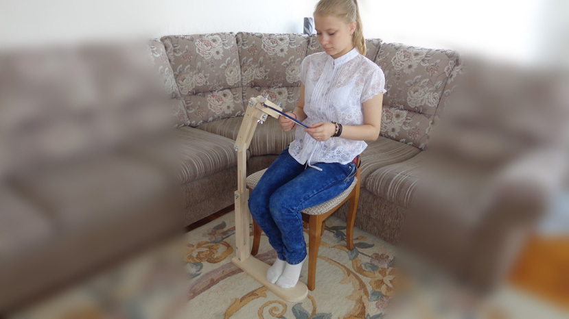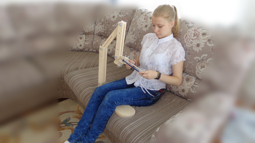 Держатель универсального типа. Возможно использование в качестве кресельного варианта (подошва-опора располагается на кресле или диване и вы присаживаетесь на неё), а так же в качестве напольного (держатель расправляется и ставится на пол, подошва-опора п
