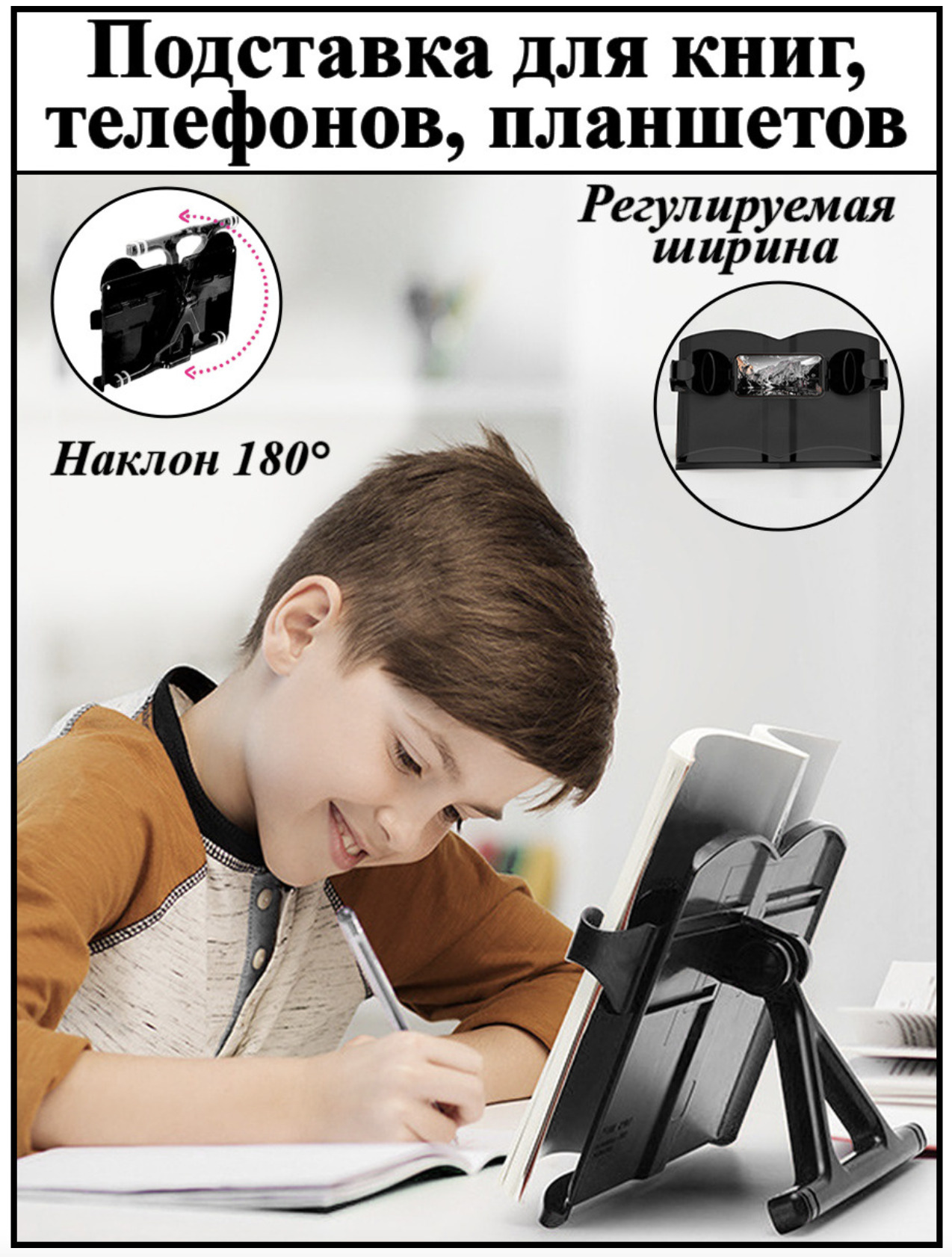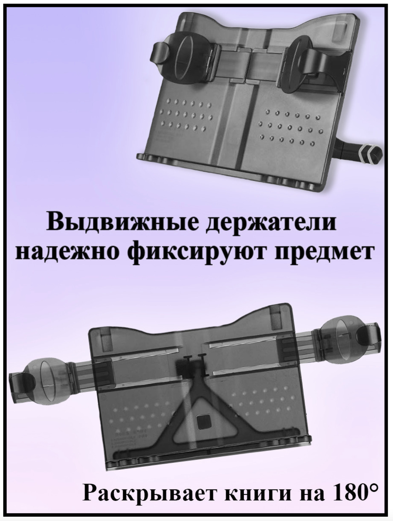 Универсальная настольная подставка для книг, учебников, телефона, планшета с фиксатором. Выдвижные держатели надежно фиксируют предмет. Раздвигается до 52 см в ширину, подойдет для чтения книг, учебников, журналов любого размера.Держатель для книг можно п