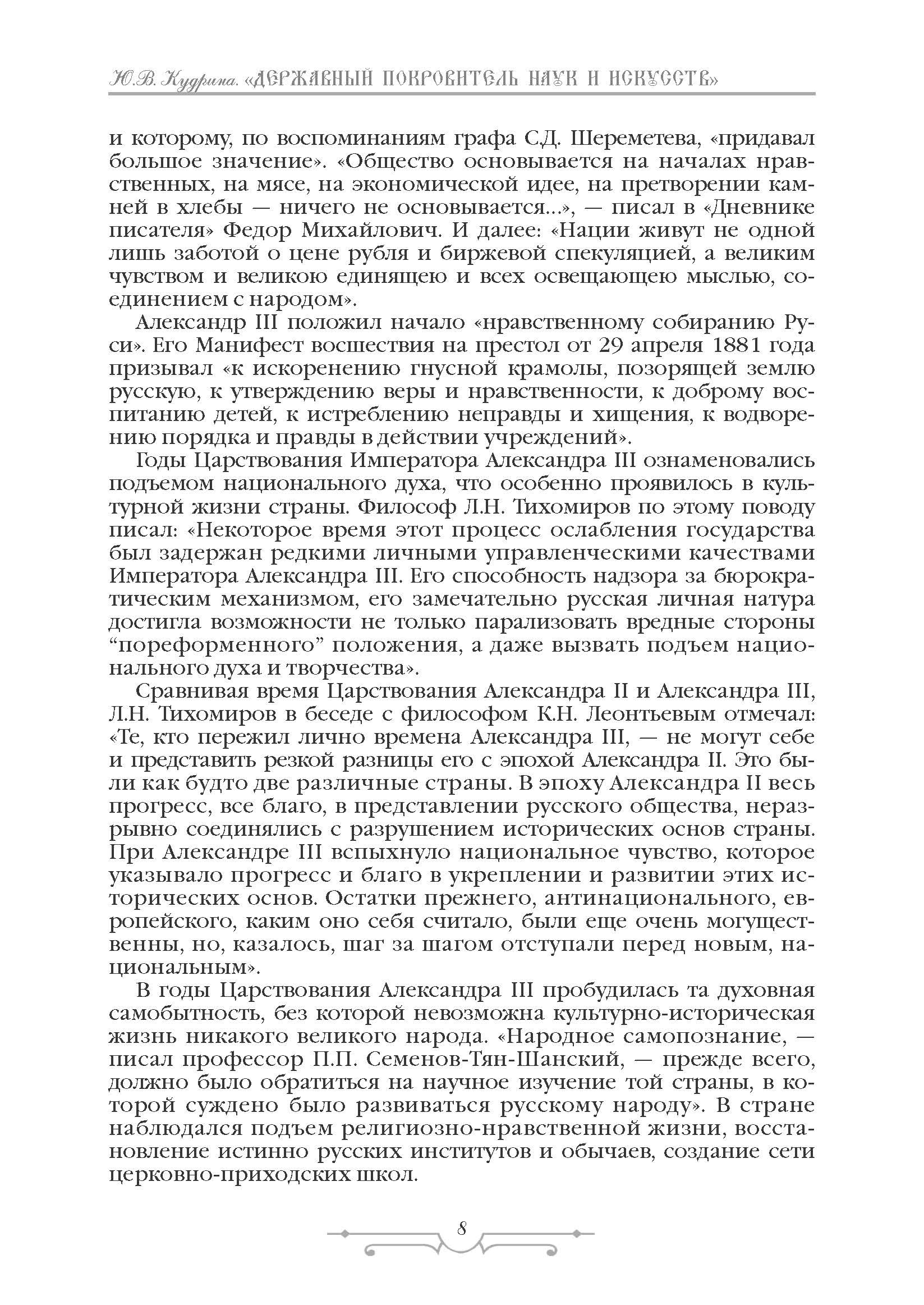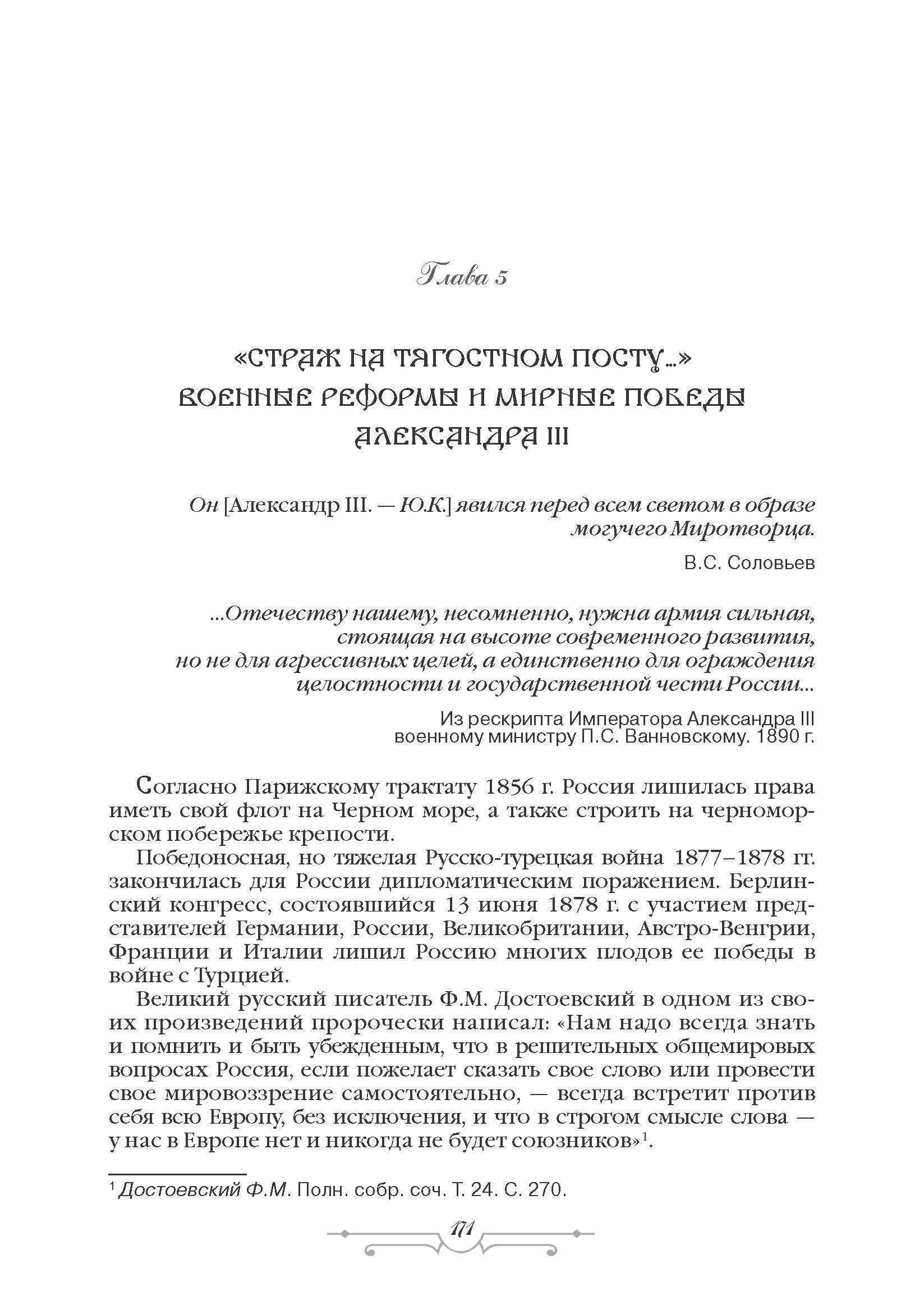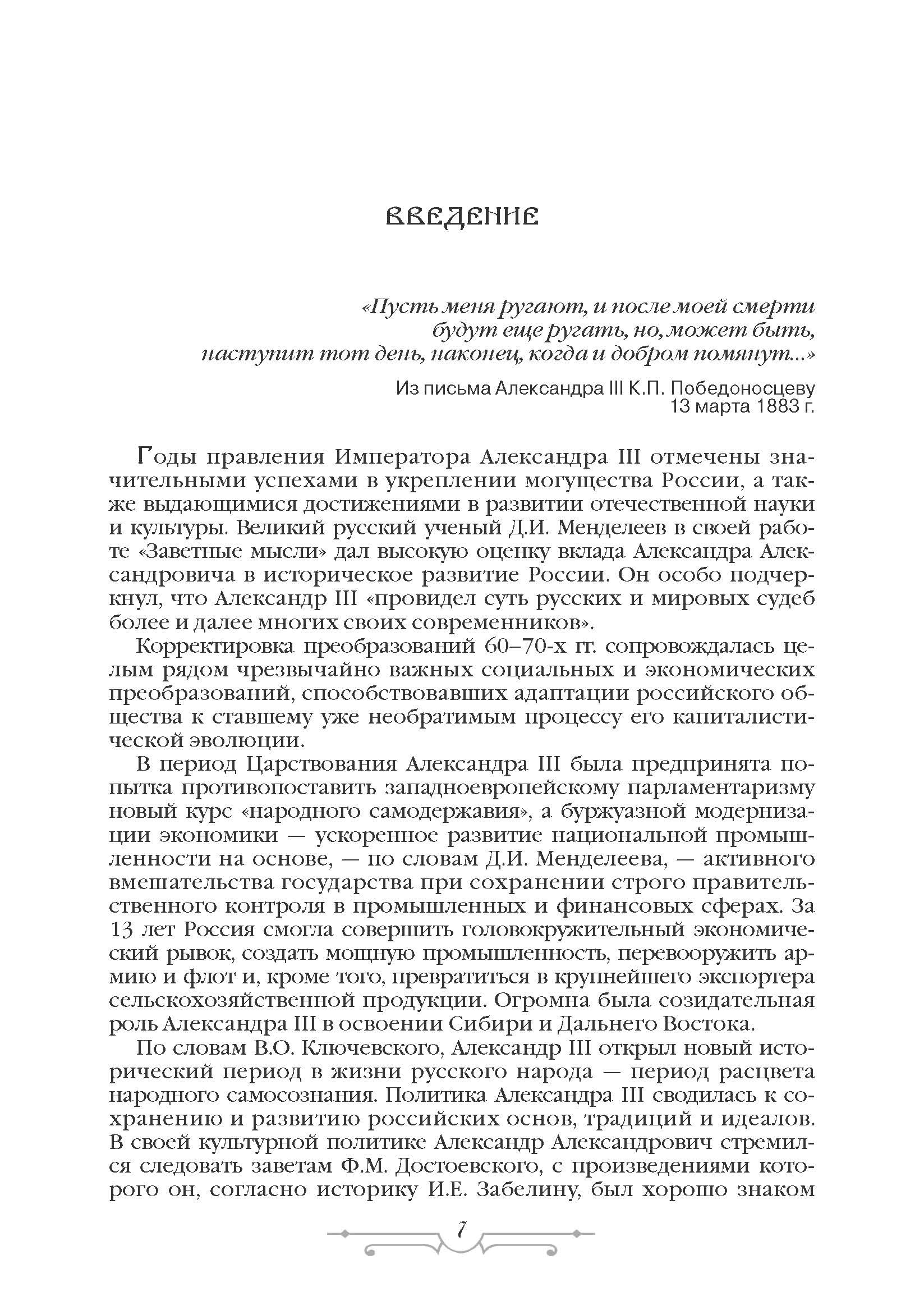 Книга посвящена годам Царствования Императора Александра III, которые были отмечены значительными успехами в укреплении могущества России, выдающимися достижениями в развитии науки и культуры. Политика Александра III сводилась к сохранению и развитию рос