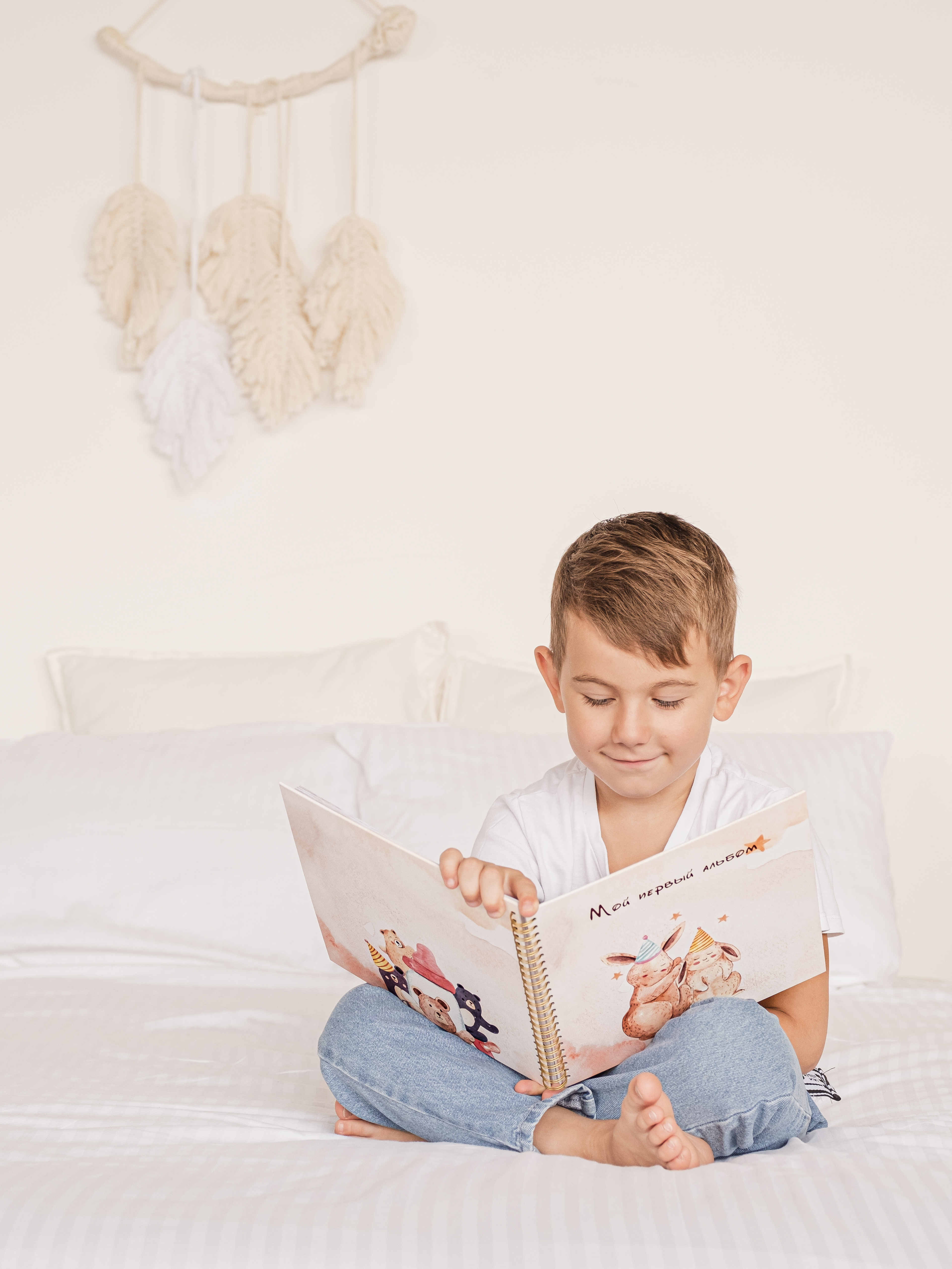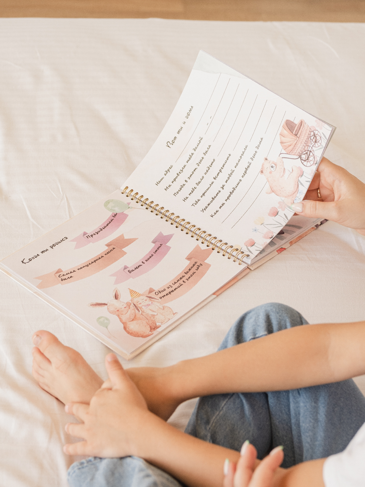 Комплектация:Детский альбом, конверт для мелочей.Описание:Ваша история начнется с первых минут, как только вы узнаете, что у вас будет малыш. Выбор имени, снимки УЗИ, первый день дома и многое другое ждет вас в этой удивительной книге, которую вы пишете с