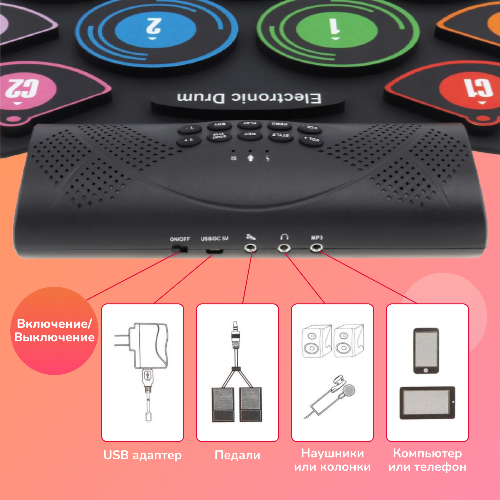 Особенности детских музыкальных инструментовВозможность подключения MP3-плеера, Разъем для наушников