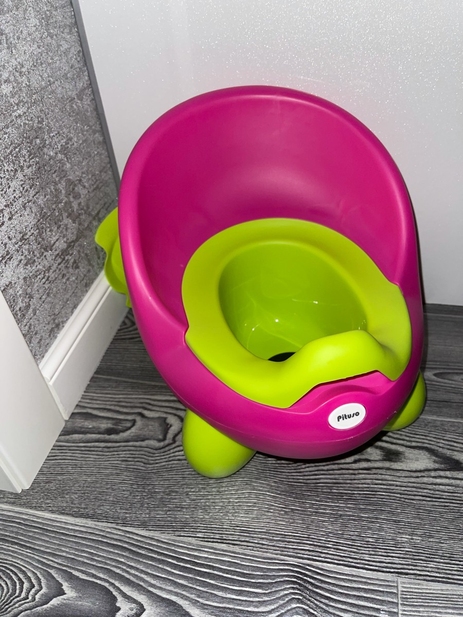 Характеристики:Детский горшок эргономичной формы на ножках со съемной внутренней частью и с крышкойУстойчивая конструкцияНет острых угловАнатомическое сидениеВысокая спинка обеспечивает максимальный комфортВнутренняя часть съемная, можно мытьЗащита от бры