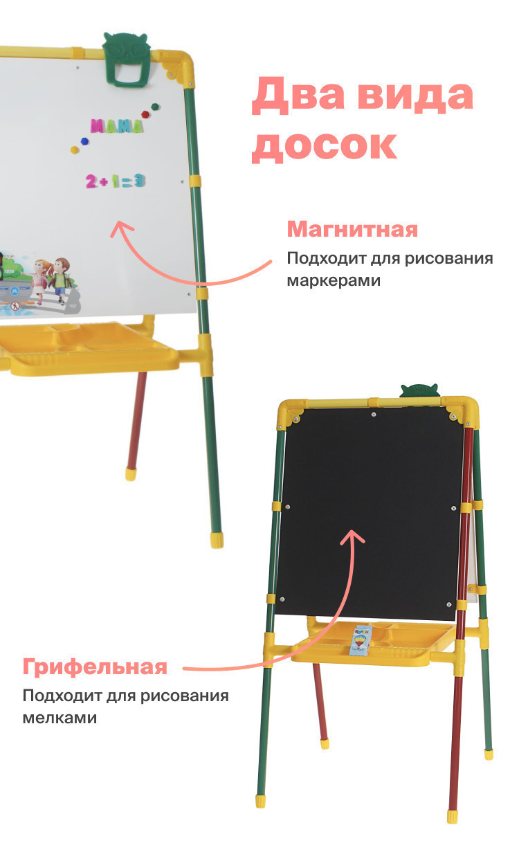 Поверхность детского мольбертаМеловая, Магнитно-маркерная, Магнитная