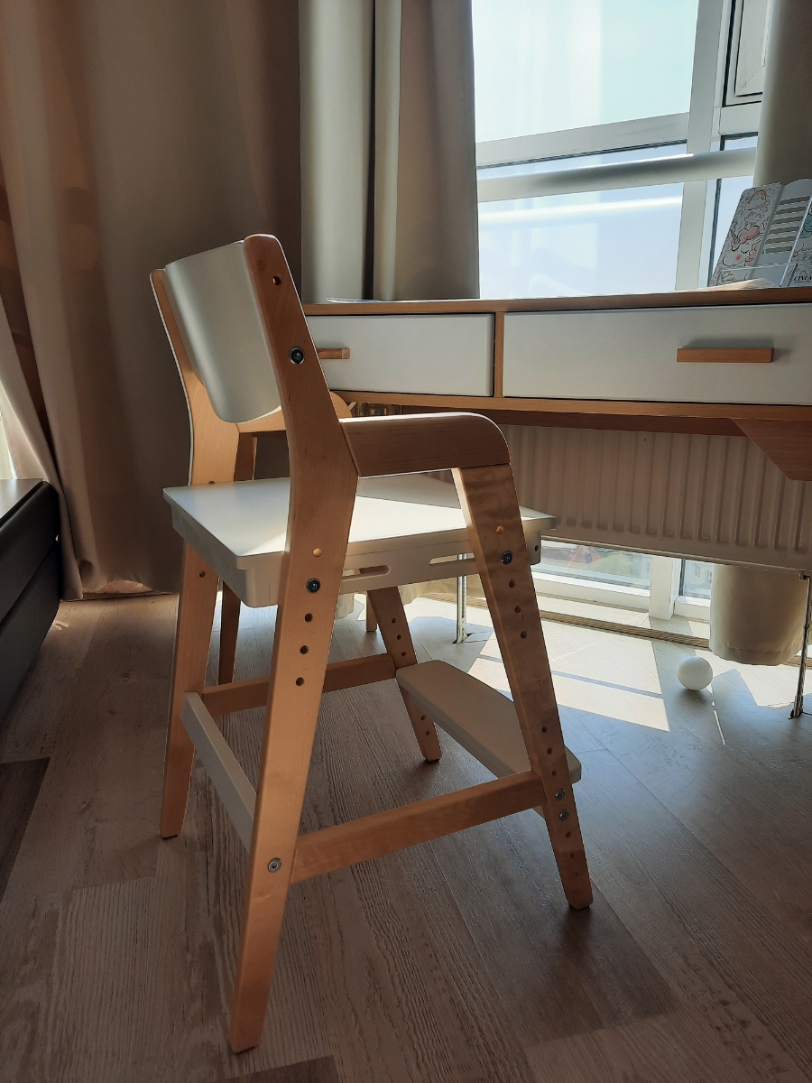 Стул предназначен для сидения за взрослым письменным столом детям с 2 лет. Стульчик рассчитан на детей от 2 лет, а верхнюю возрастную границу нет, потому что даже взрослый человек чувствует себя комфортно, сидя на этом стуле (нижнее положение регулировки)