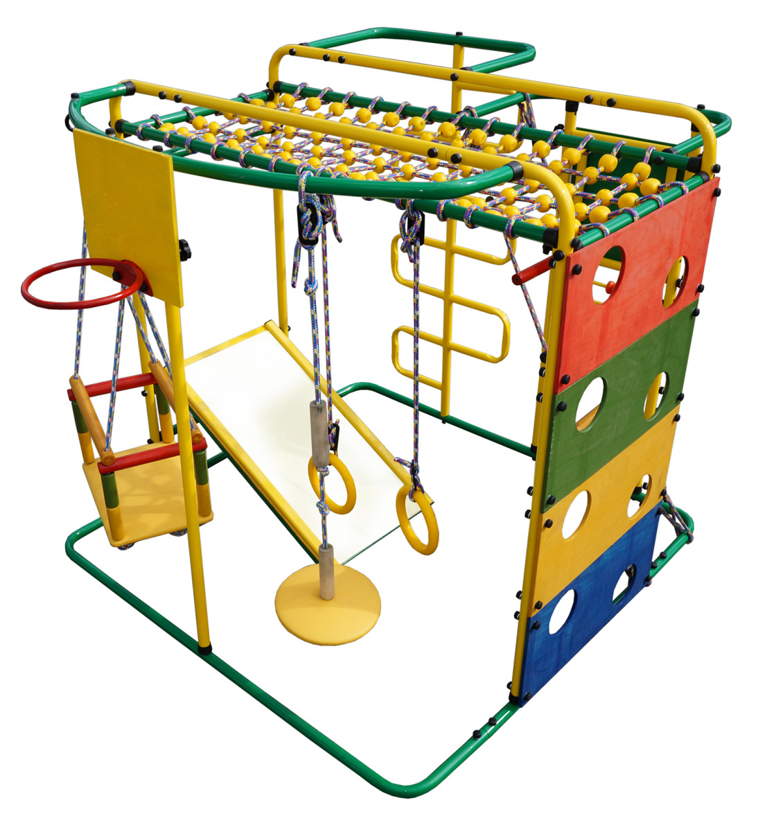 Комплектация:Горка;Качели;Кольца;Тарзанка;Плетеная сетка;Лестница веревочнаяОписание: