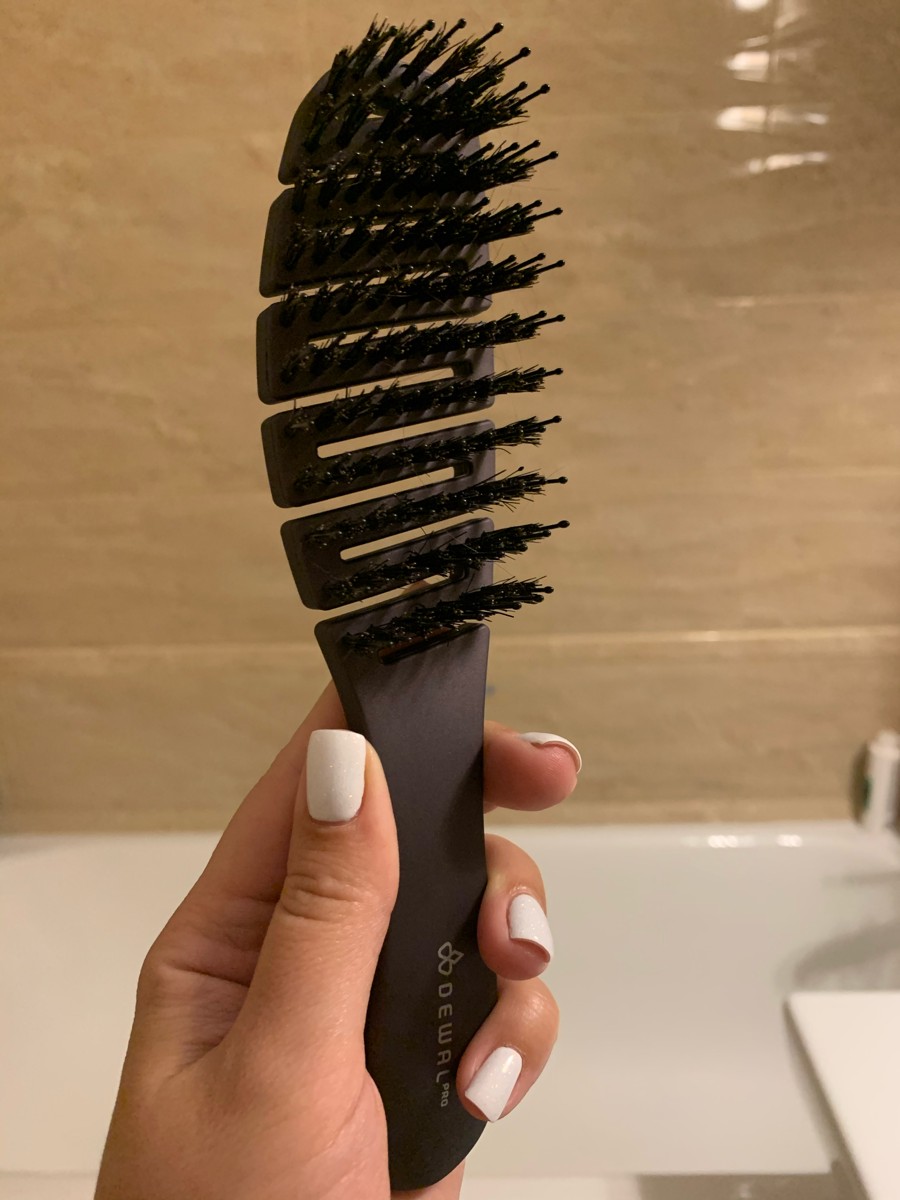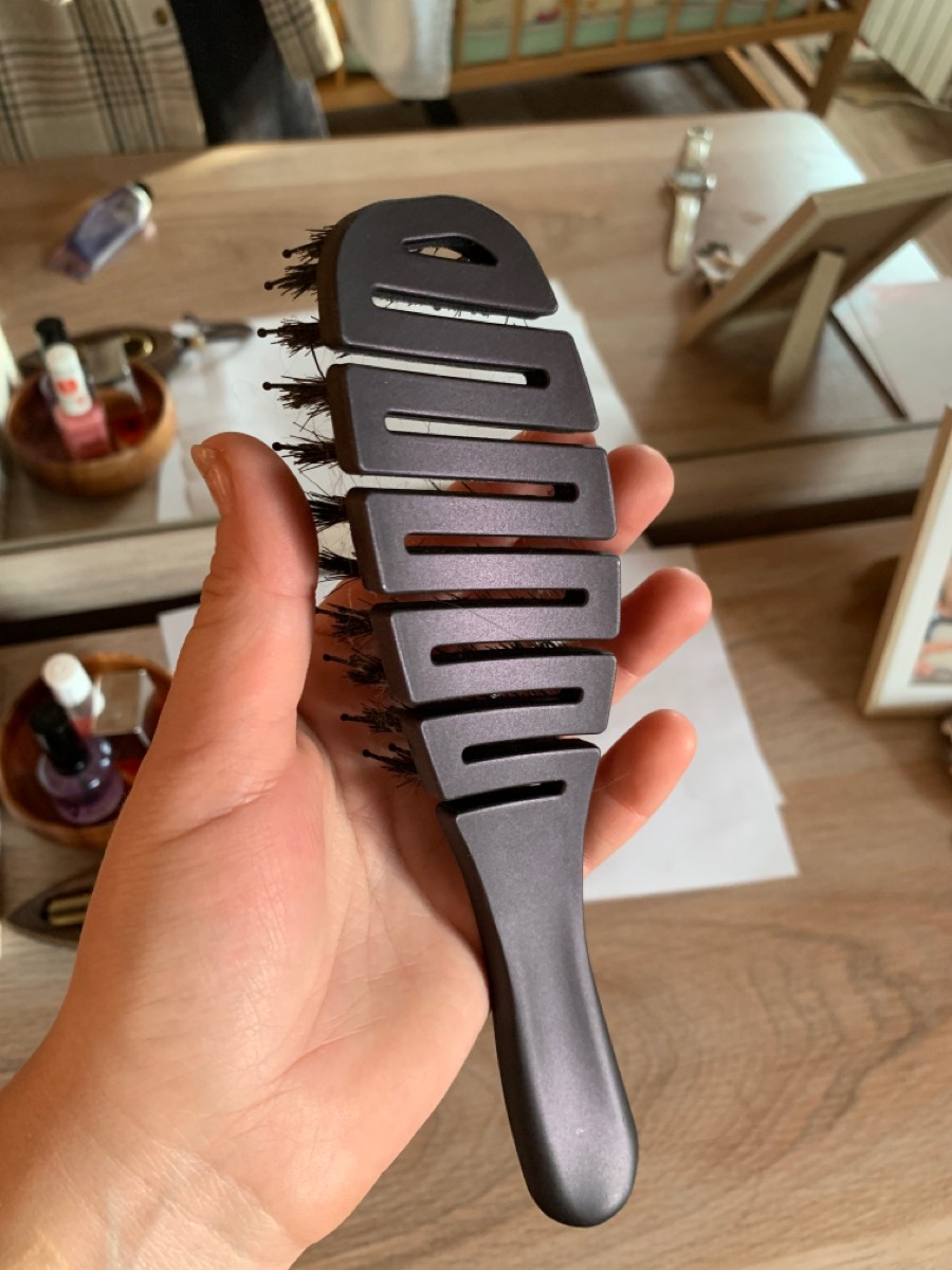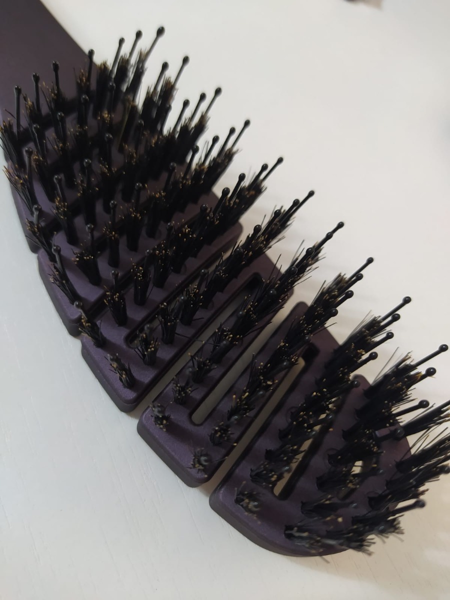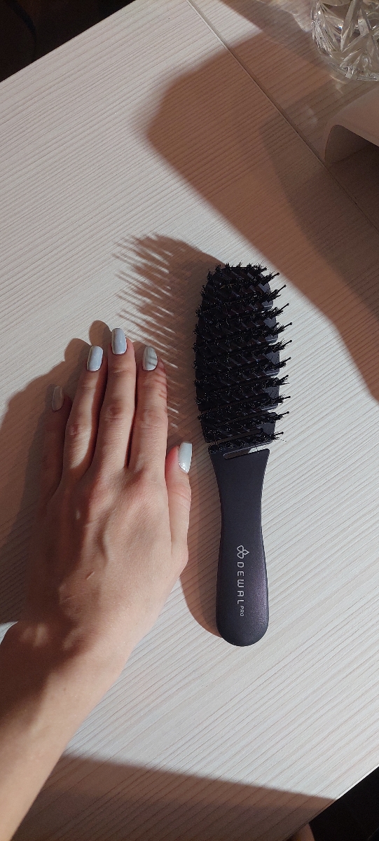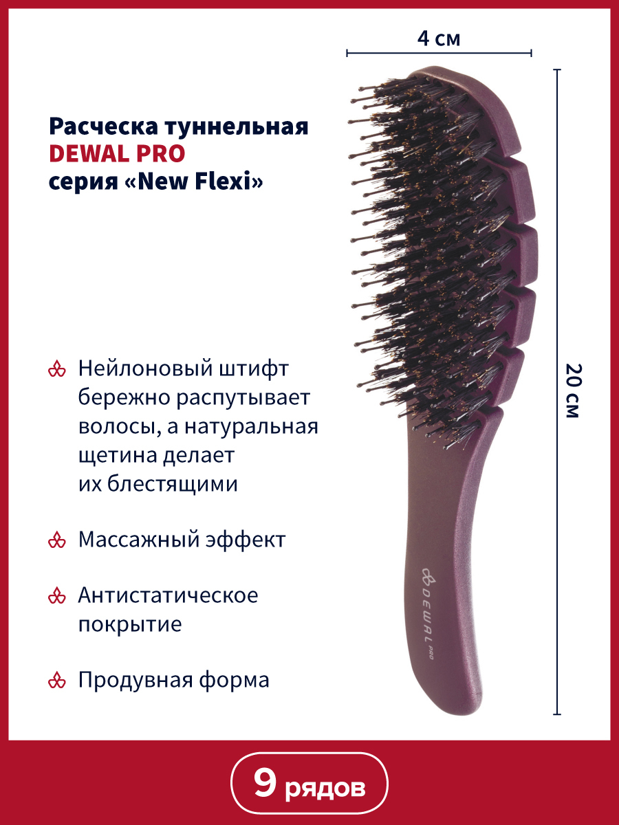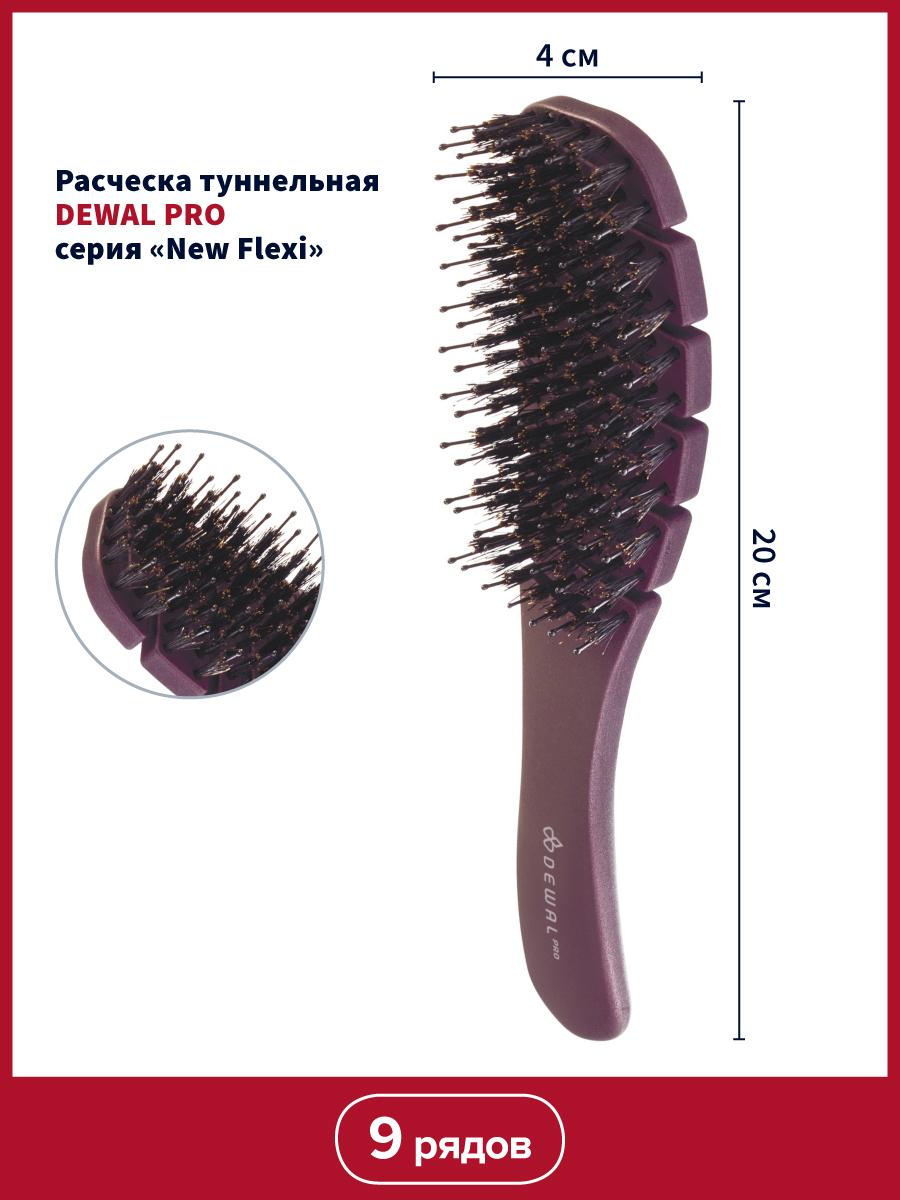Туннельная щетка для волос New Flexi овальной формы, среднего размера. Имеет антистатическое покрытие, натуральную щетину, нейлоновые штифты, 9 рядов. Применяется для укладки и расчесывания волос. Удобная эргономичная ручка с логотипом, не скользит в руке
