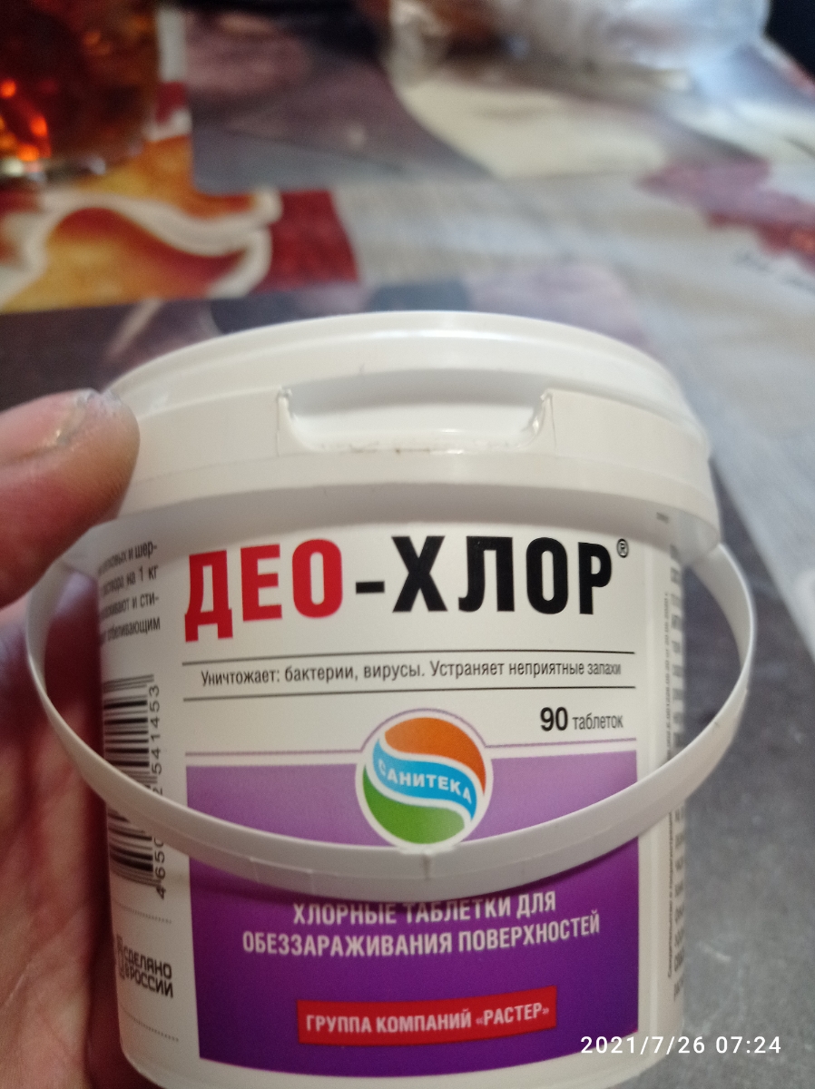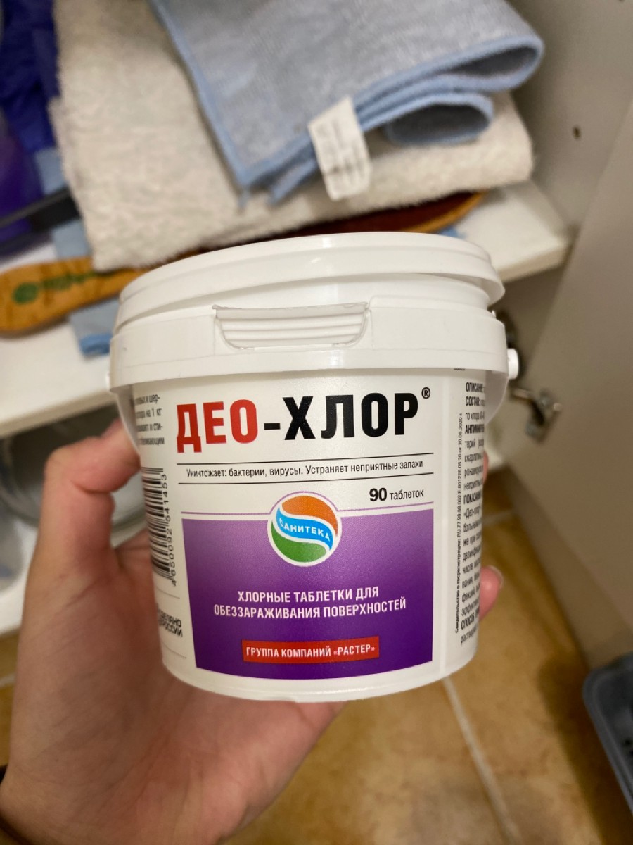 Состав:Натриевая соль дихлоризоциануровой кислотыОписание:Дезинфицирующее средство «ДЕО-ХЛОР» представляет собой таблетки массой 3,4 грамма со слабым запахом хлора, содержащие в качестве действующего вещества натриевую соль дихлоризоциануровой кислоты, а