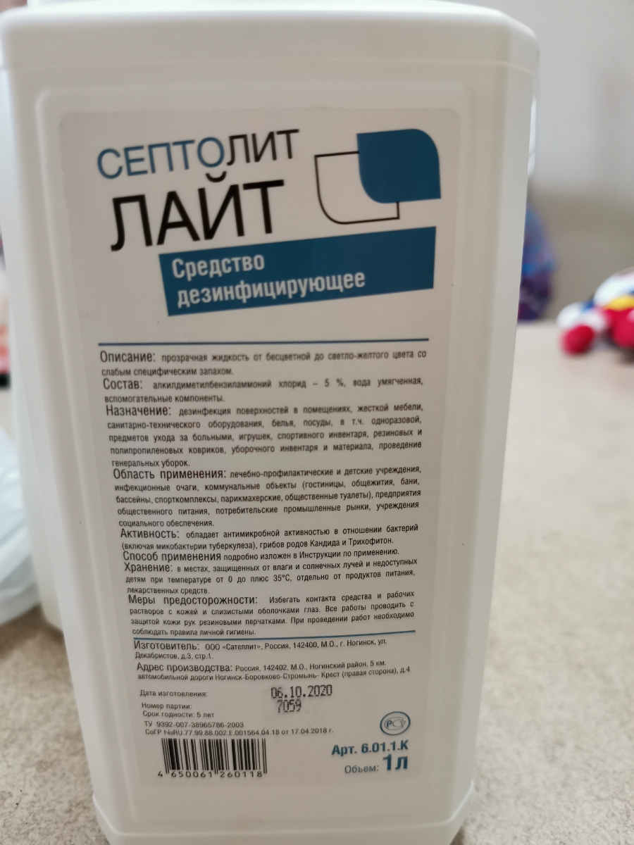 Комплектация:выпускается во флаконах из полимерных материалов емкостью 1л.Состав средства:Алкилдиметилбензиламмоний хлорид (АДБАХ) 5%, моющие добавки, вспомогательные компонентыОписание:Очистка и дезинфекция игрушек и детских принадлежностейОчистка и дези