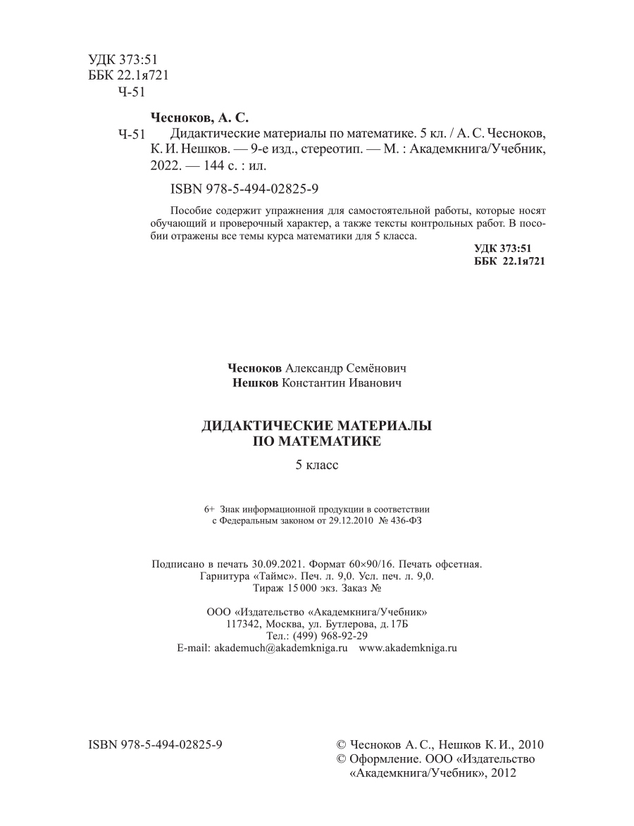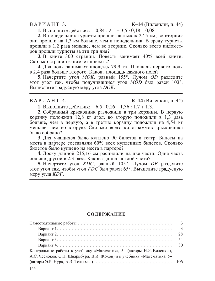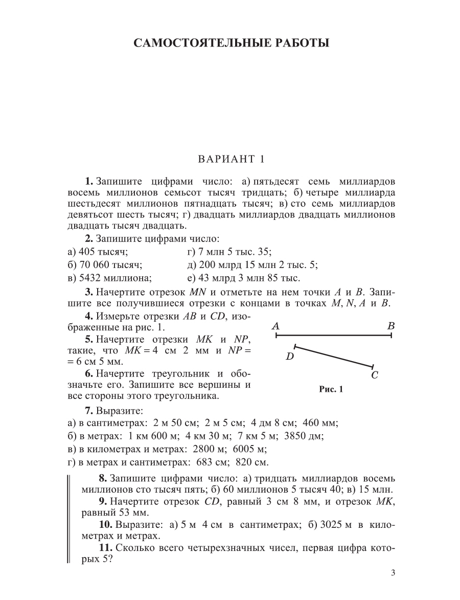 Пособие содержит упражнения для самостоятельных работ, которые носят обучающий и проверочный характер, а также тексты контрольных работ. В пособии отражены все темы курса математики для 5 класса.
