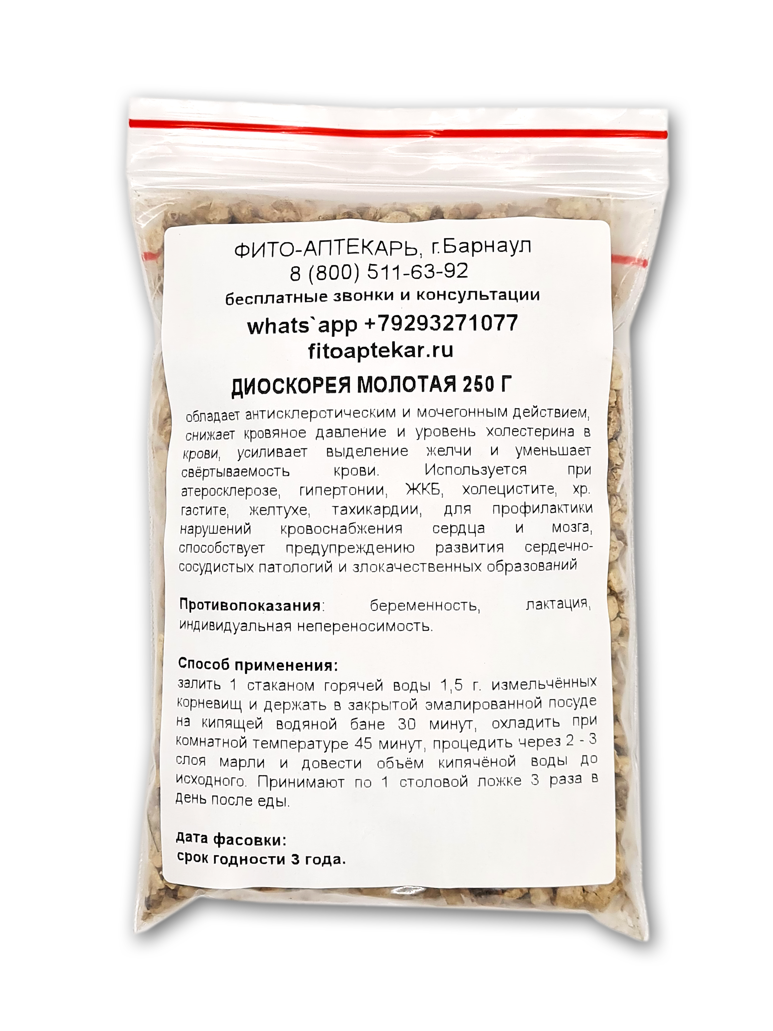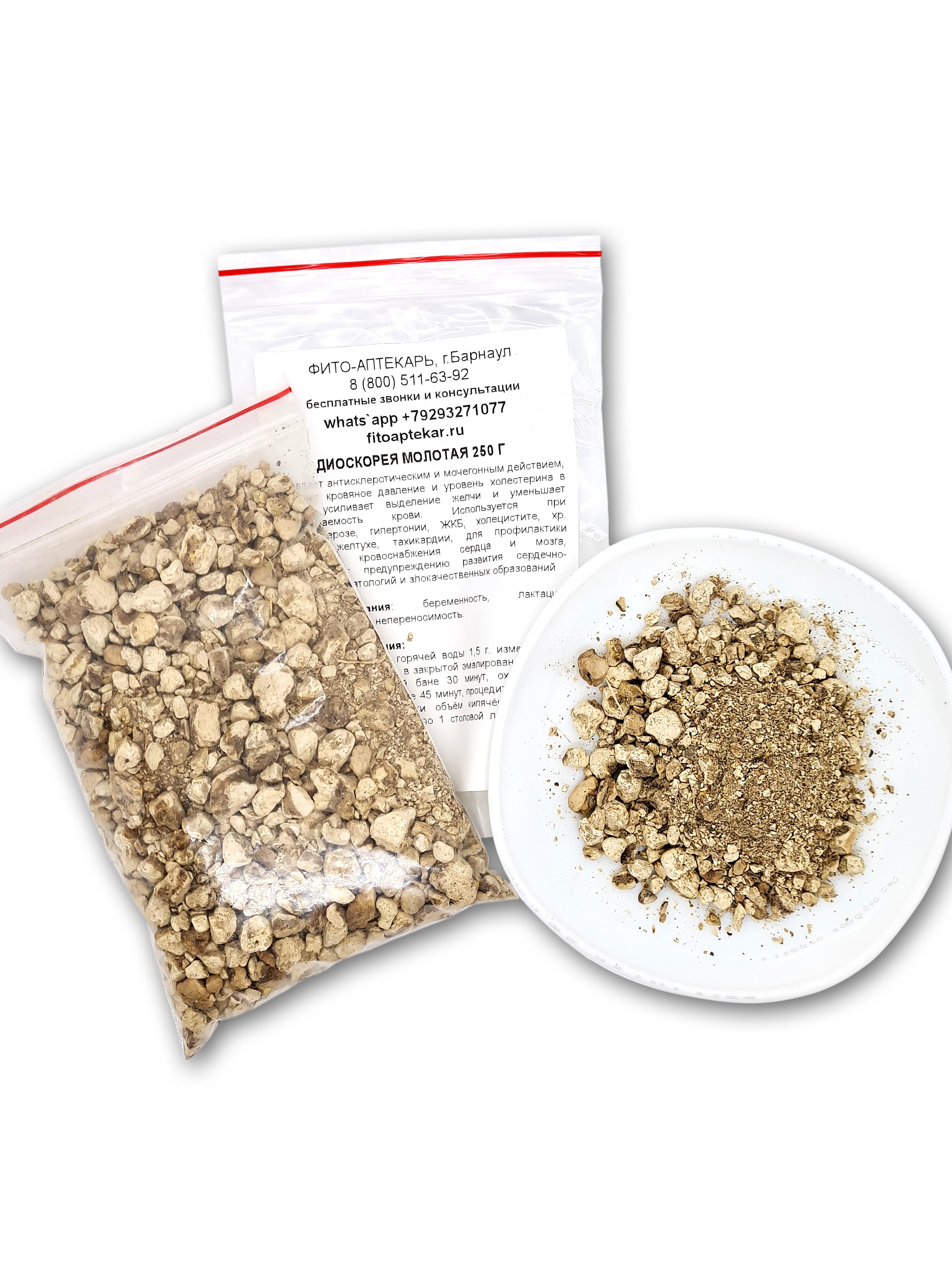 Корни диоскореи обладают антисклеротическим и мочегонным действием, снижают кровяное давление и уровень холестерина в крови, усиливают выделение желчи и уменьшают свёртываемость крови. Назначаются для профилактики и лечение атеросклероза сосудов головного