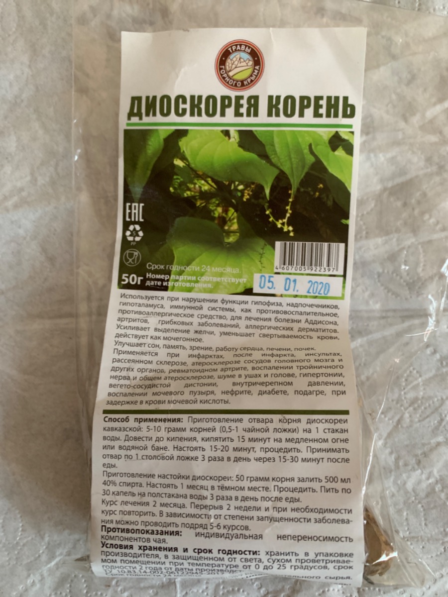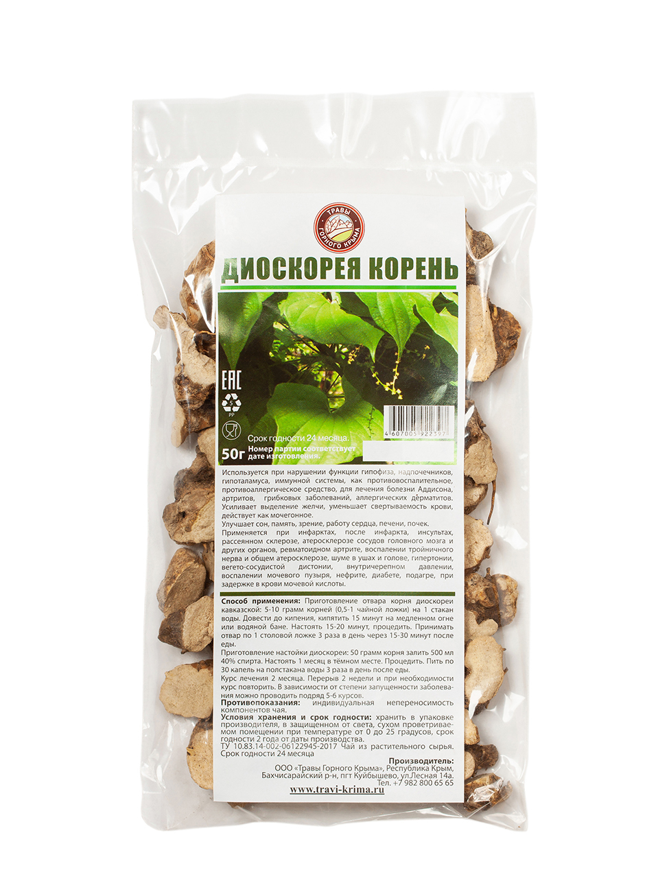 Условия хранения:Хранить в упаковке производителя, в защищенном от света, сухом проветриваемом помещении при температуре от 0 до 25 градусов. Срок годности 2 года от даты производителя.Состав:Диоскорея корень 100%Описание:По содержанию стероидных гликозид