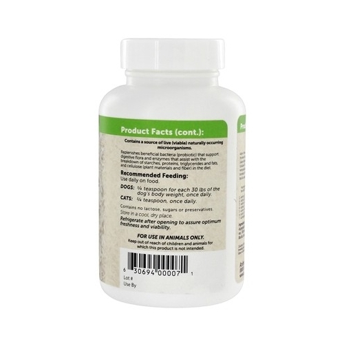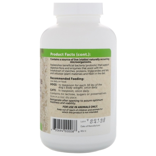 Дозировкакошкам по 1/4 чайной ложки добавляют в пищу один раз в день; собакам по 1/4 чайной ложки на каждые 13 кг веса добавлять в пищу один раз в день
