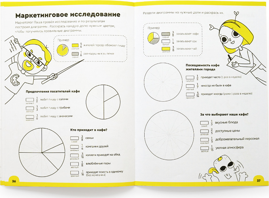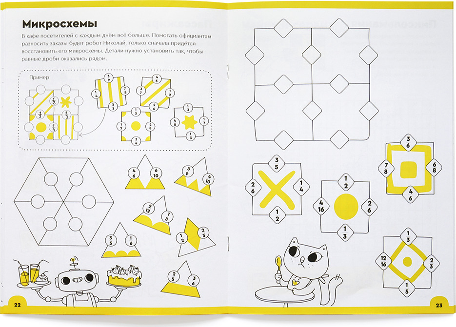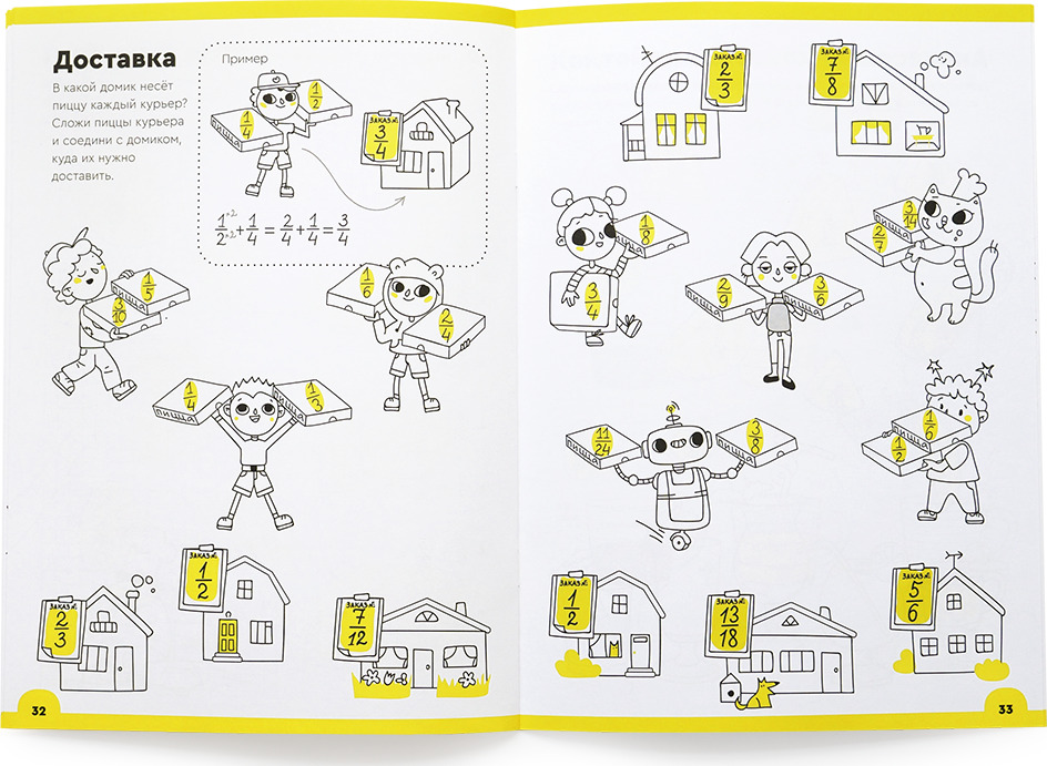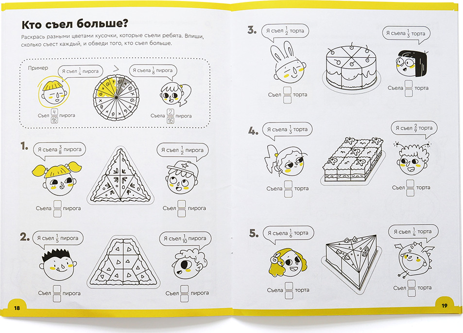 Увлекательные задания интересно объясняют принципы сложения и вычитания дробей. Решая примеры с помощью наглядных кусочков пиццы и пирогов, дети учатся производить операции с числовыми дробями. Секрет понимания долей и дробей в поэтапном освоении. Нет ник