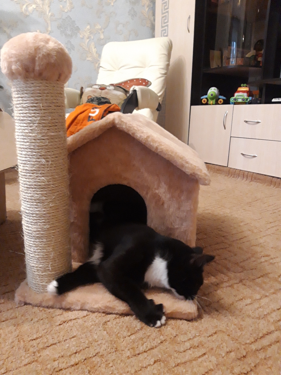 Комплектация:Домик с когтеточкой, съемная подушкаОписание:Шурум-бурум / Домик для кошки с когтеточкой "Избушка"/меховой домик для кота/когтеточка из сизалиДом для кошки со столбиком-когтеточкой из сизали.Площадь жилого пространства 0,15 кв.м подойдет для