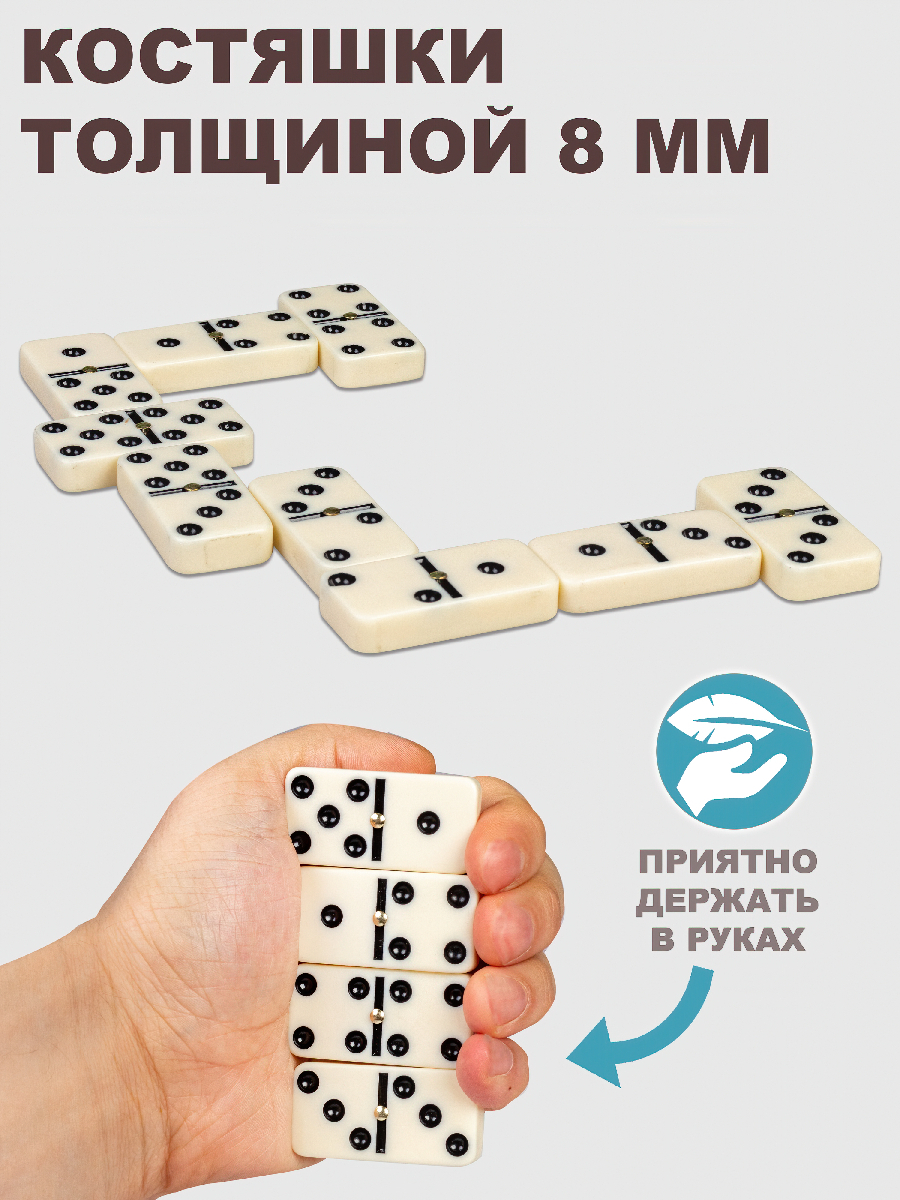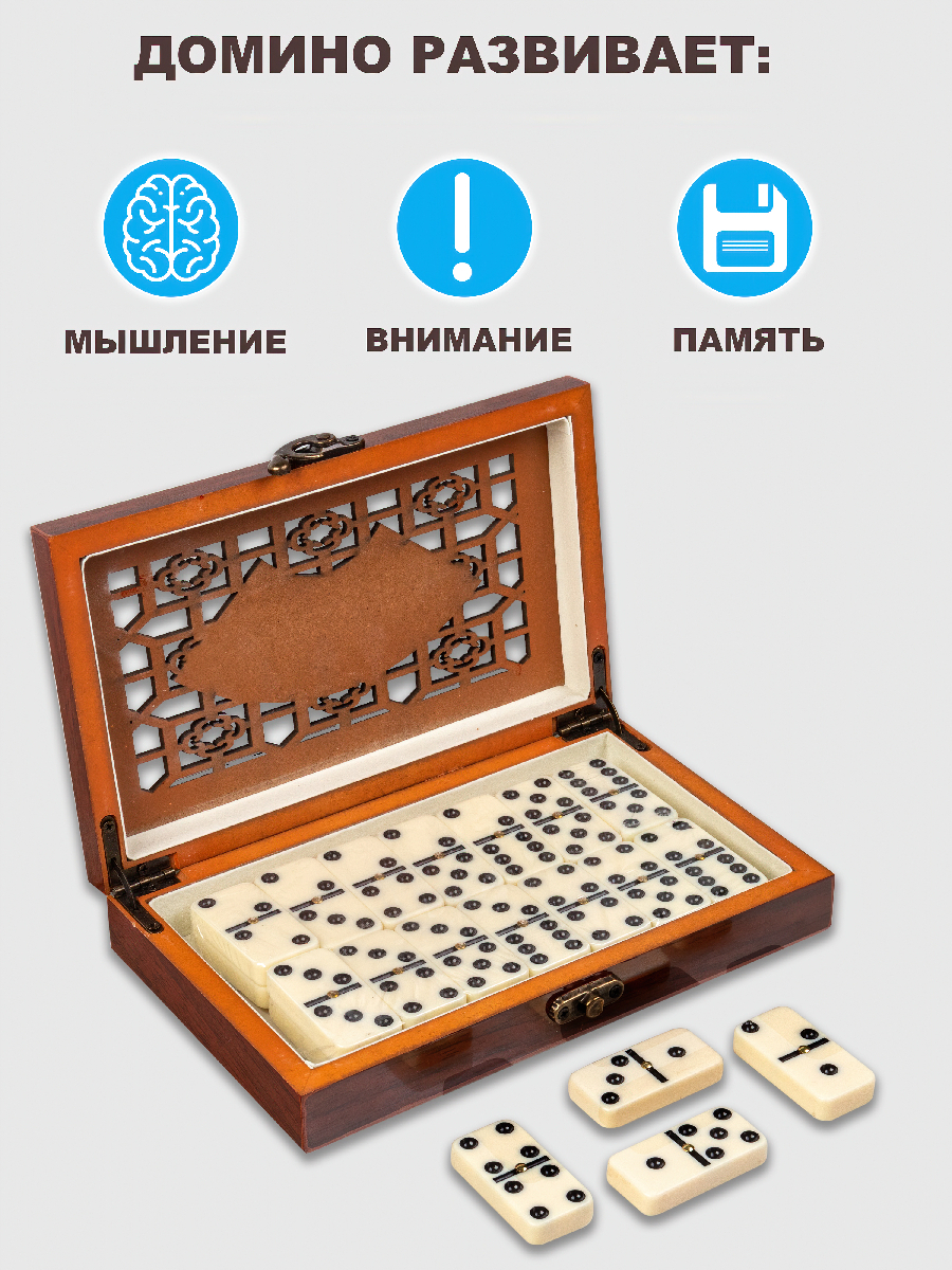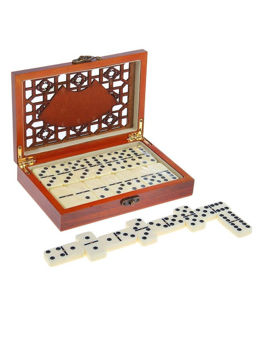Домино в подарочном боксе – красиво оформленный классический набор костяшек для игры в домино.✔ Оригинальный бокс для хранения костяшек выполнен с узором на лицевой части и сувенирным замочком. Такую компактную шкатулку всегда приятно взять в руки;✔ Костя