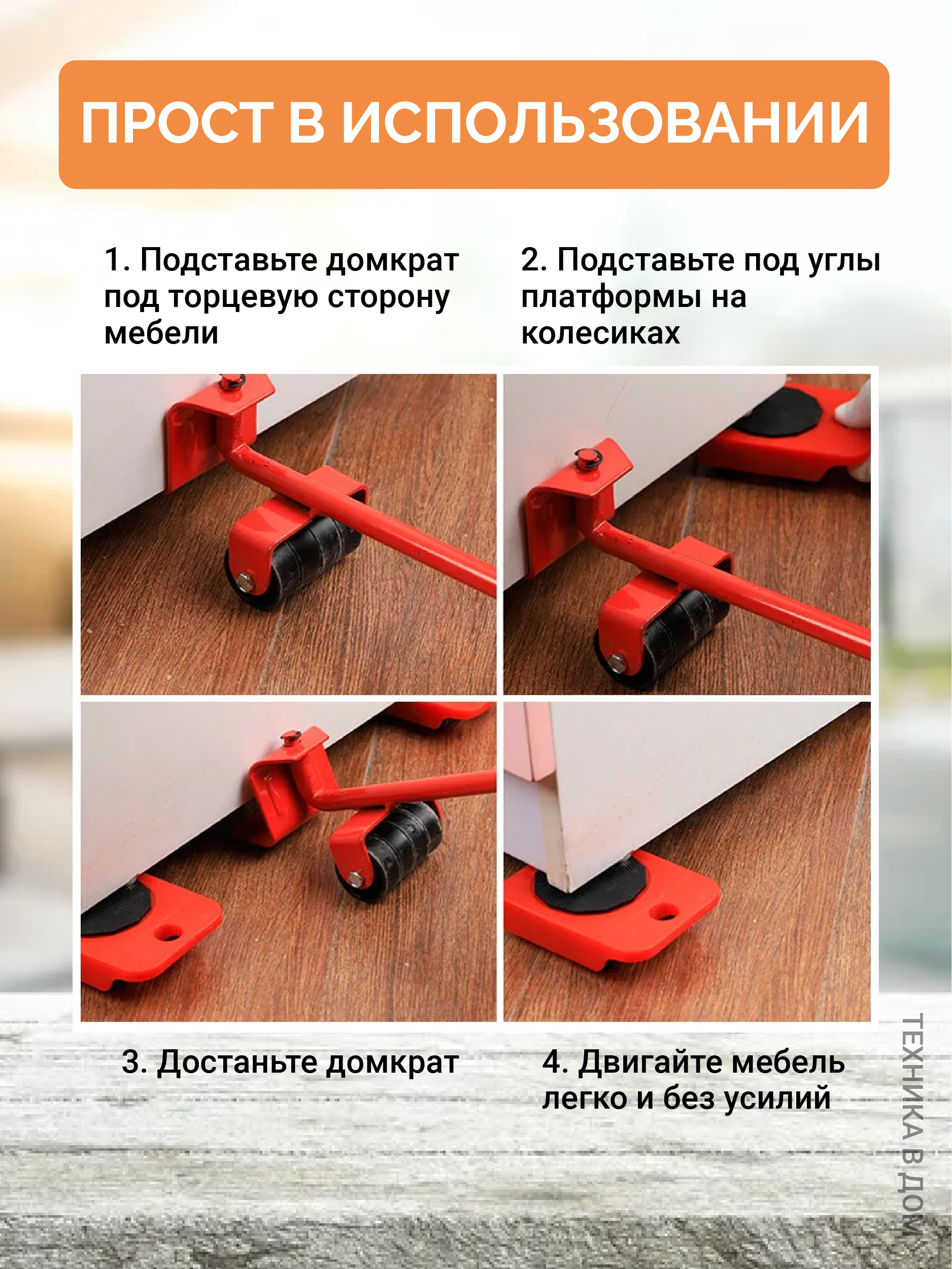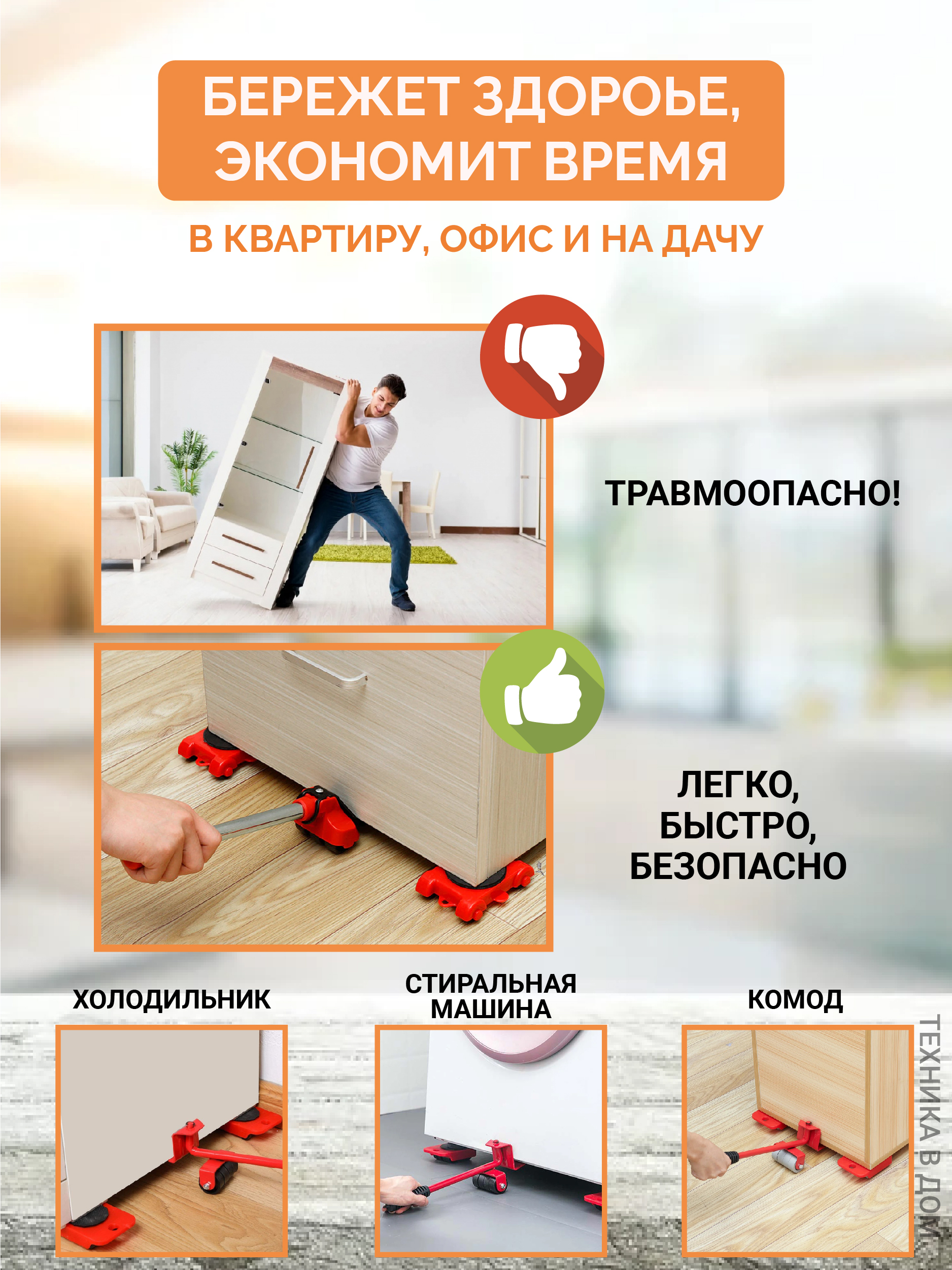 Наш набор для перемещения мебели изготовлен из высоколегированной стали и сверхпрочного полиамида, предназначен для перестановки мебели, крупно-бытовой техники ( стиральные машины, холодильник, плита и т.д.). Двигать тяжелые предметы теперь легко, благода
