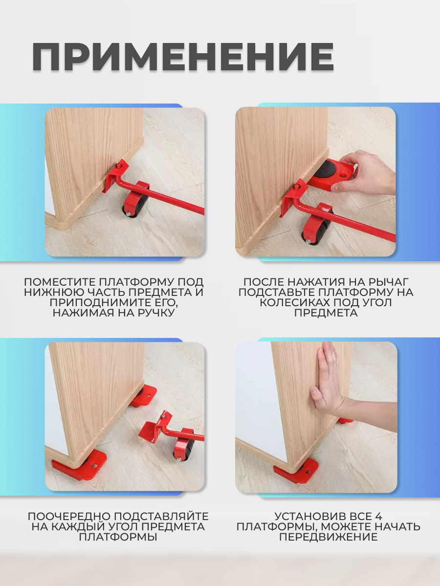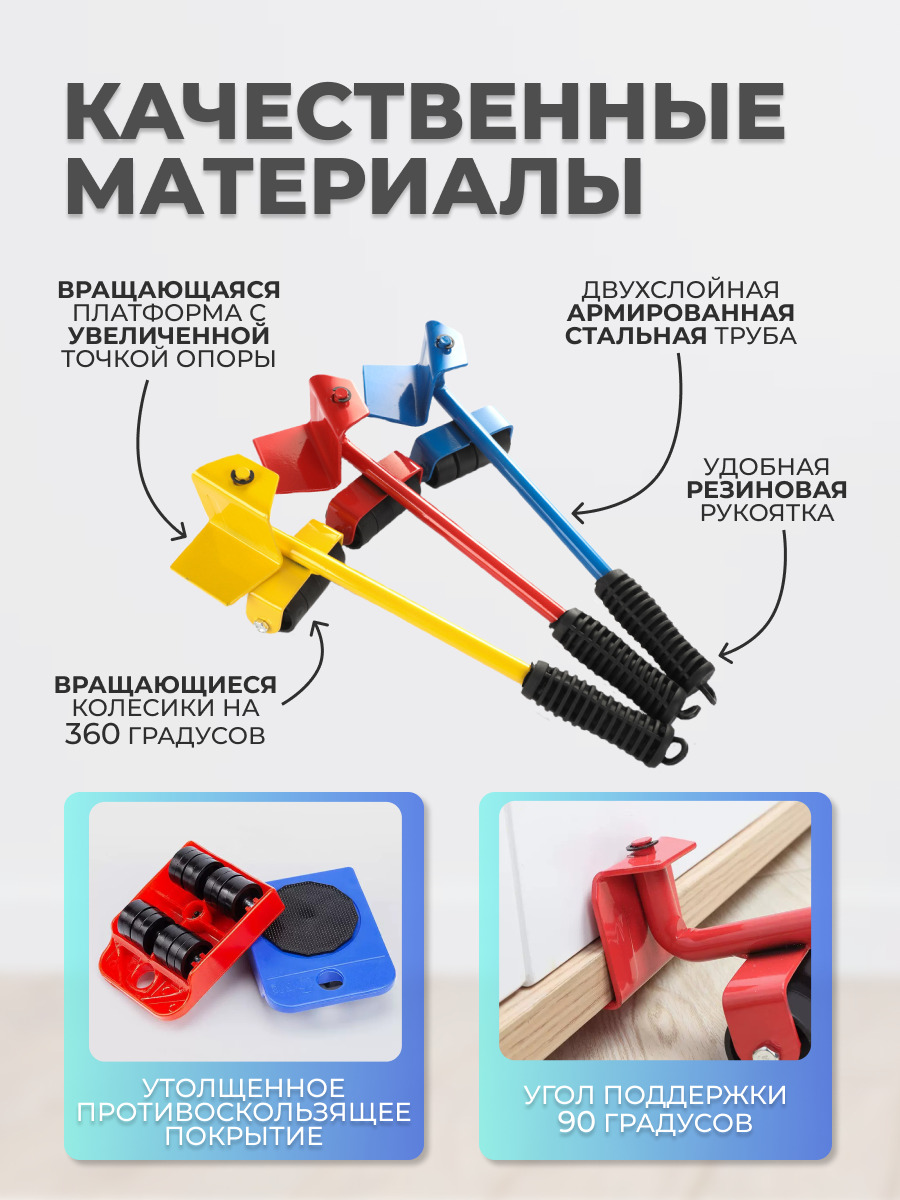 Комплектация:Набор для перемещения мебели - 1 шт.Описание:?️ Наш набор для перемещения мебели изготовлен из высоколегированной стали и сверхпрочного полиамида, предназначен для перестановки мебели, крупно-бытовой техники ( стиральные машины, холодильник,