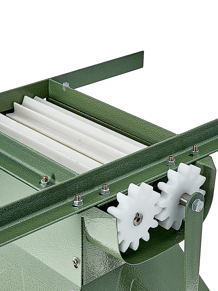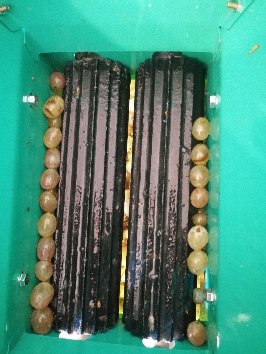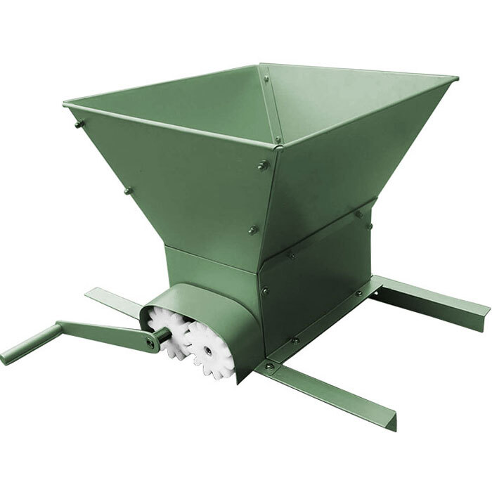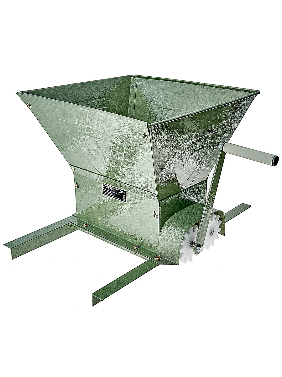 Дробилка механическая для винограда УИ-2 - приспособление с несложным механизмом, предназначенное для переработки винограда или ягод. Конструкция состоит из загрузочного бункера, емкости для сбора жмыха и двух параллельно расположенных дробильных валиков.