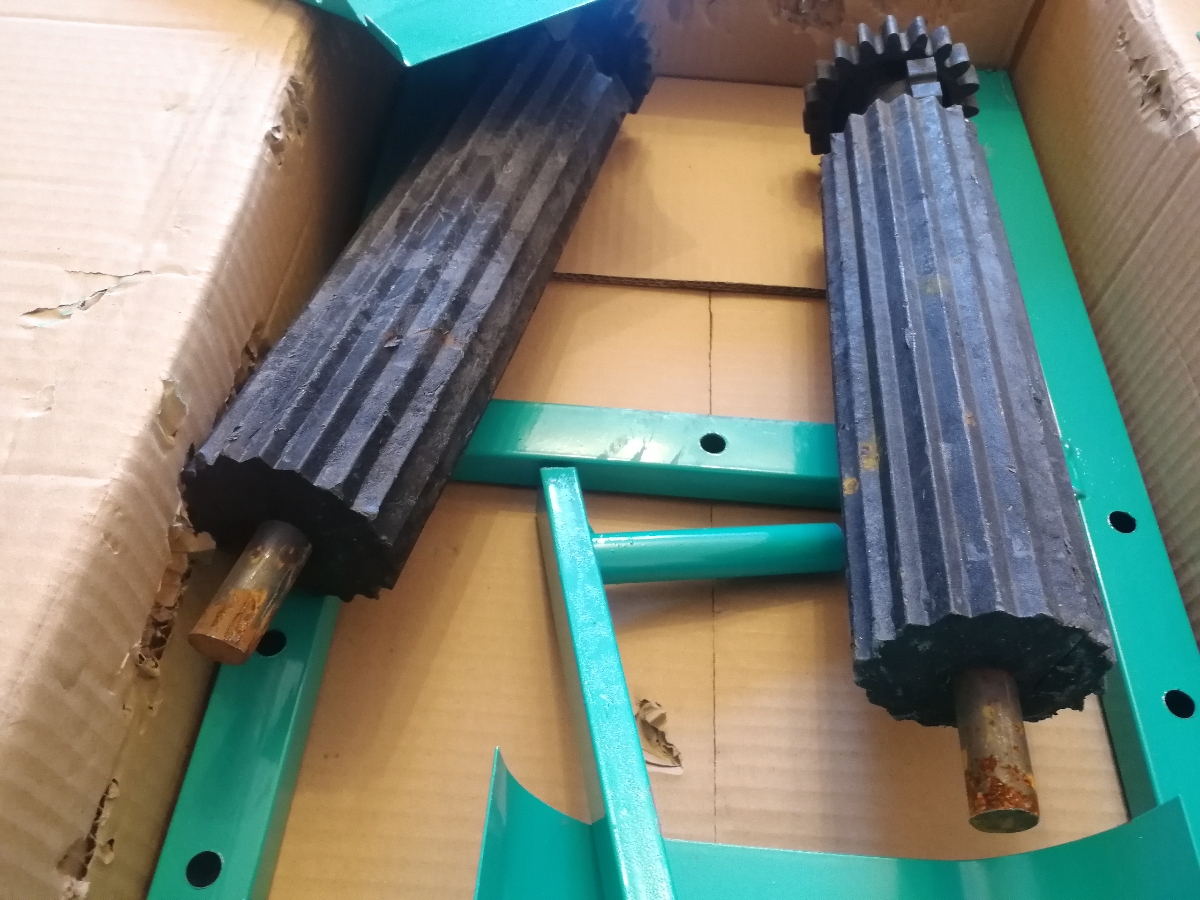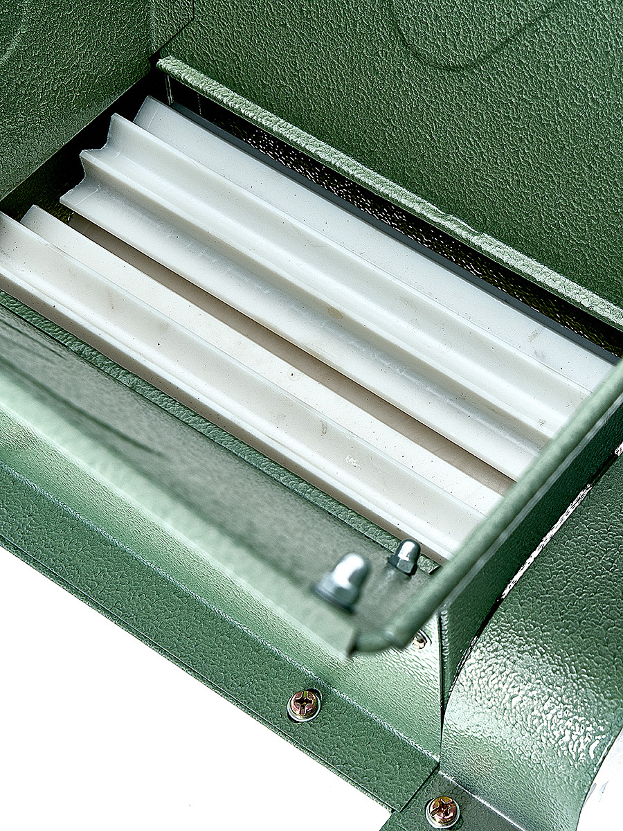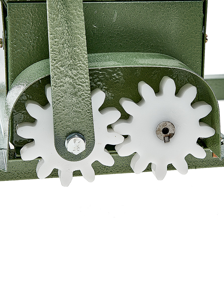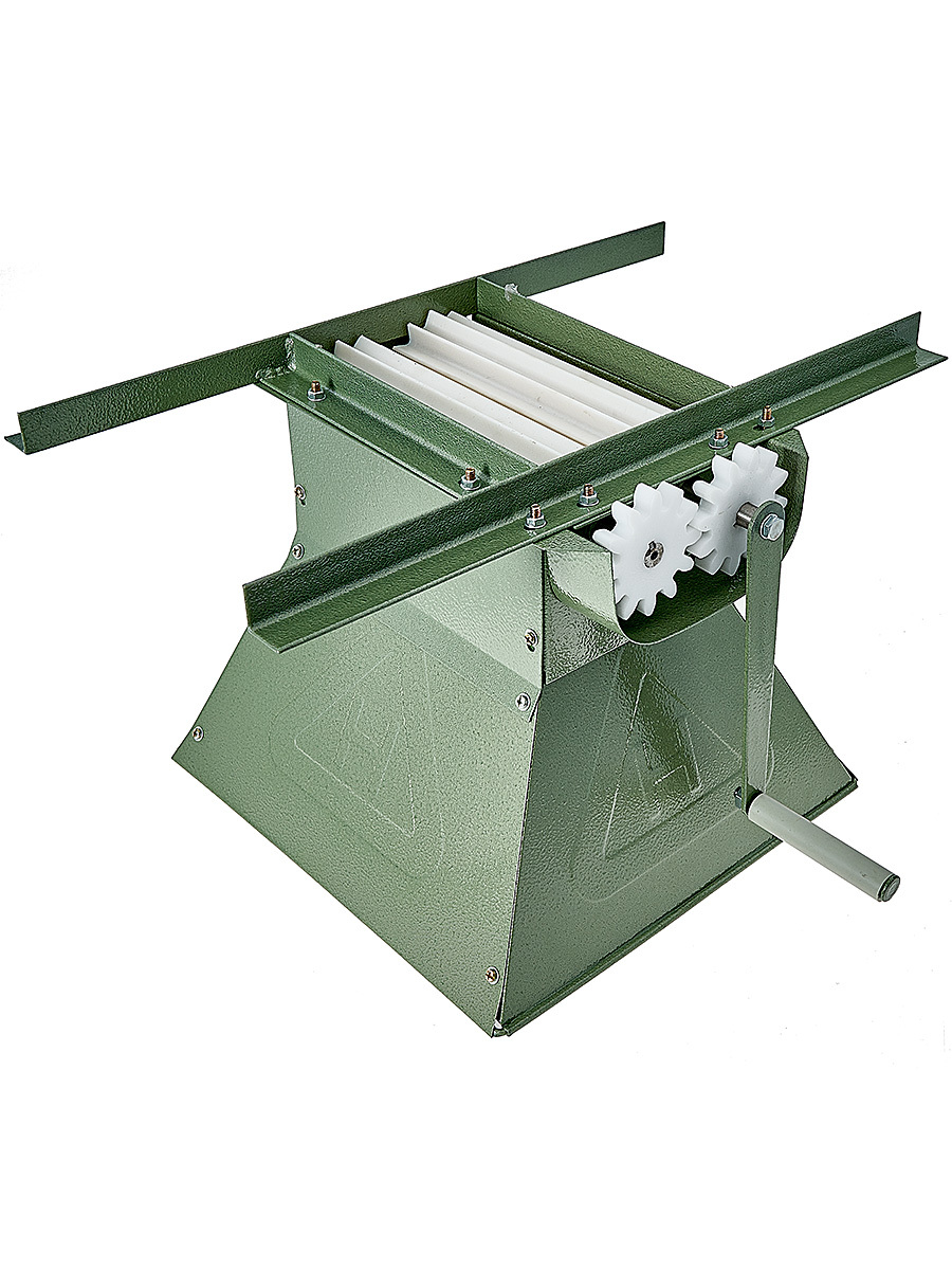 Дробилка механическая для винограда УИ-2 - приспособление с несложным механизмом, предназначенное для переработки винограда или ягод. Конструкция состоит из загрузочного бункера, емкости для сбора жмыха и двух параллельно расположенных дробильных валиков.