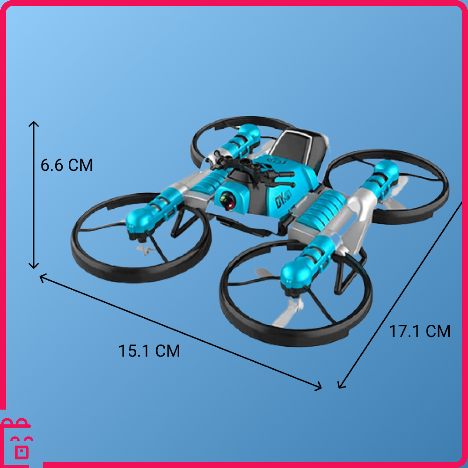 Комплектация:Дрон трансформер, Браслет пульт управления, USB зарядка для ПУ, 2 запасных пропеллера, батарея 550 mAh, USB переходник для зарядки аккумулятора.