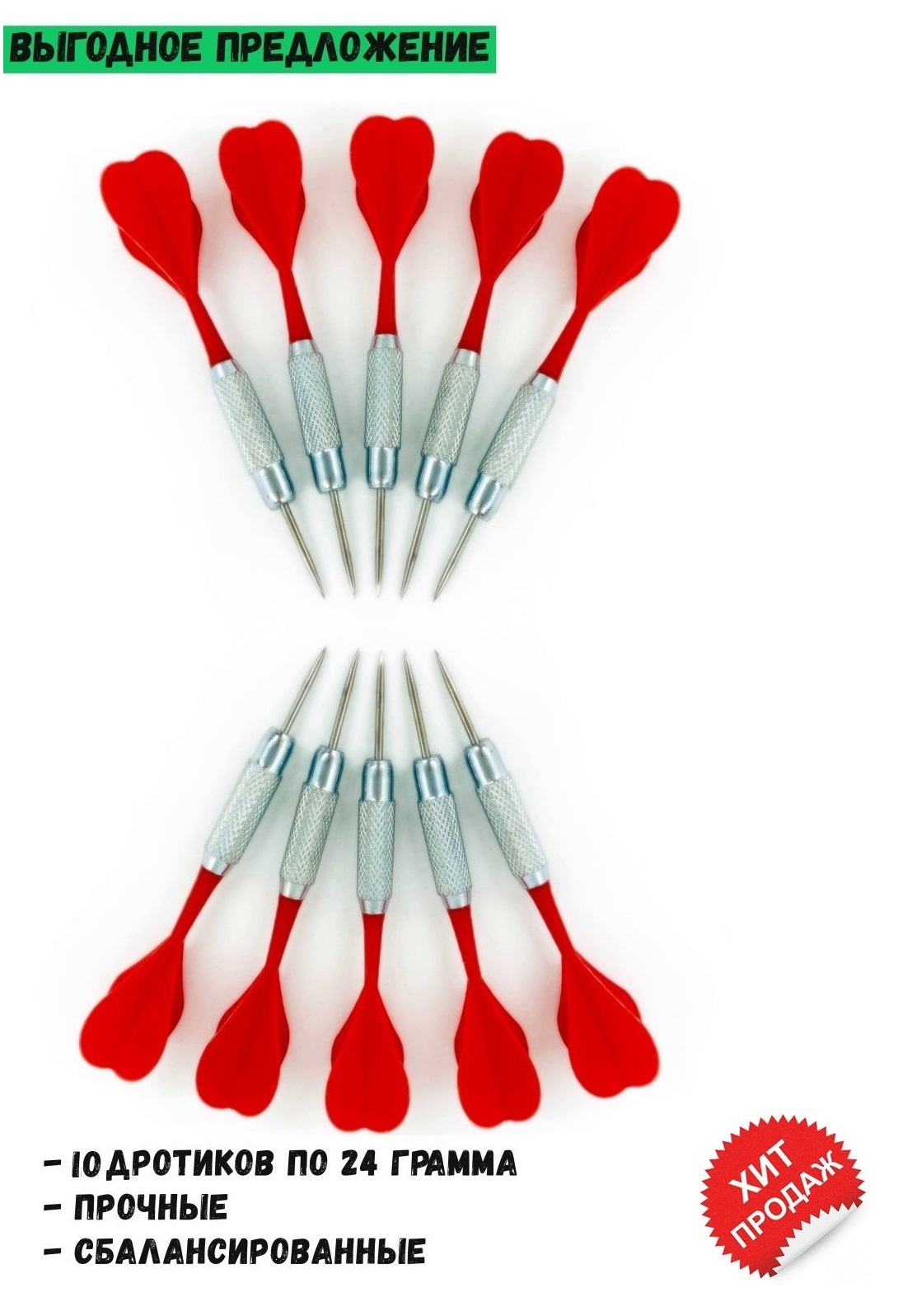 Дротики 24 грамм на блистере. Набор - 10 шт.Необходимый элемент для игры в Дартс - это, конечно же, дротики. Основными частями дротика являются наконечник, баррель, хвостовик и оперение.Материал: сталь, пластик.Вес 1 дротика: 24 гр.Длина: 15,5 см.Комплект