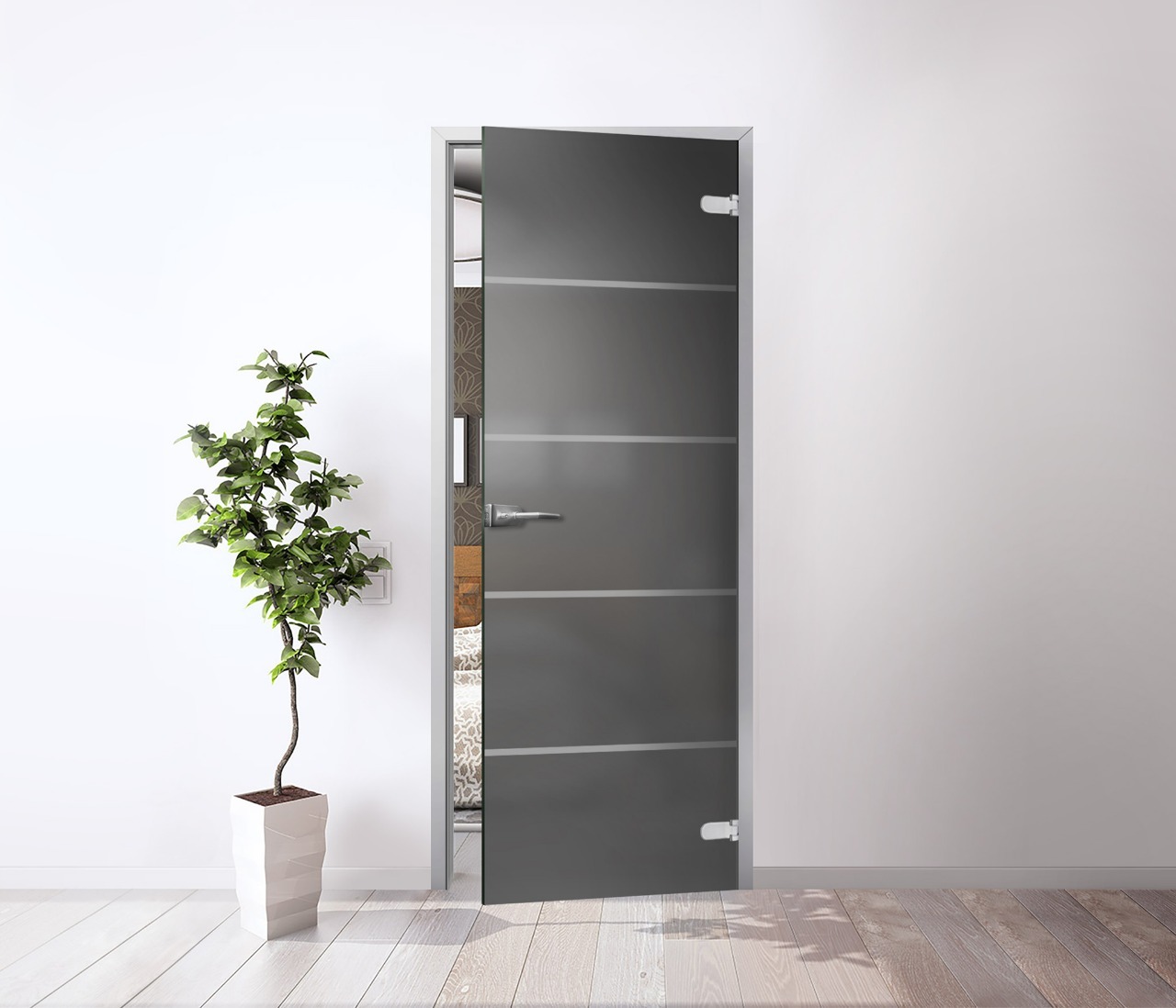 Межкомнатная стеклянная дверь с матовым серым полотном удачно впишется в любой интерьер, не нарушит своей эстетикой самый строгий и выдержанный интерьер. Матовое полотно двери является оригинальной альтернативой глухому – оно создает необходимую приватнос