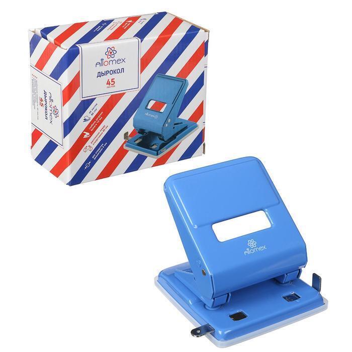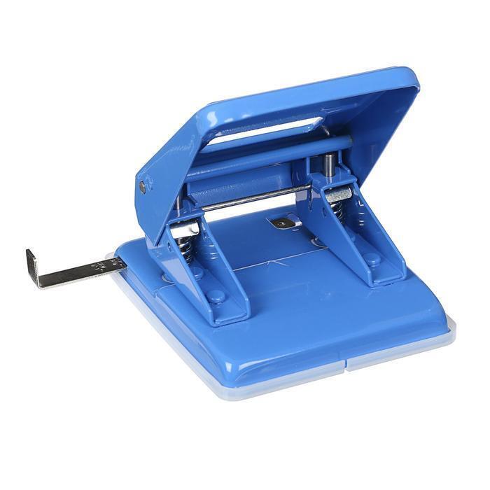 Цвет: синий. Количество пробиваемых листов: 45. Ограничительная линейка: да. Количество отверстий: 2. Европодвес: нет. Штрихкод на единице товара: да. Вид упаковки: коробка картонная. Материал: металл.