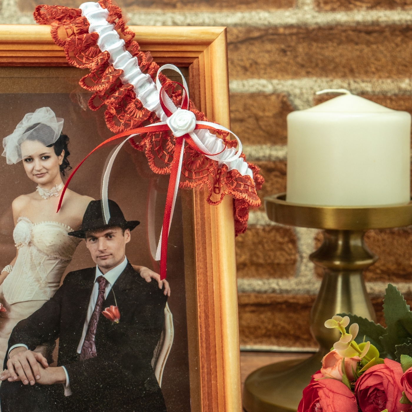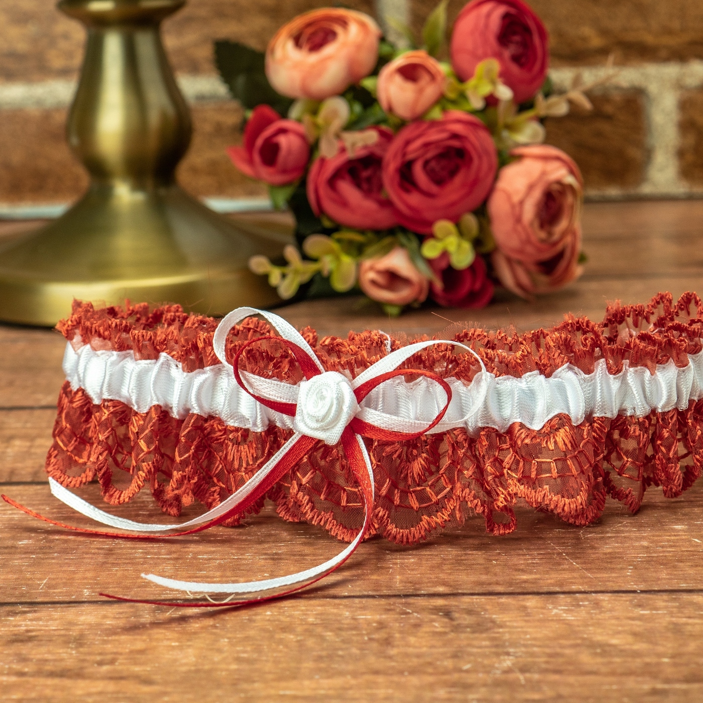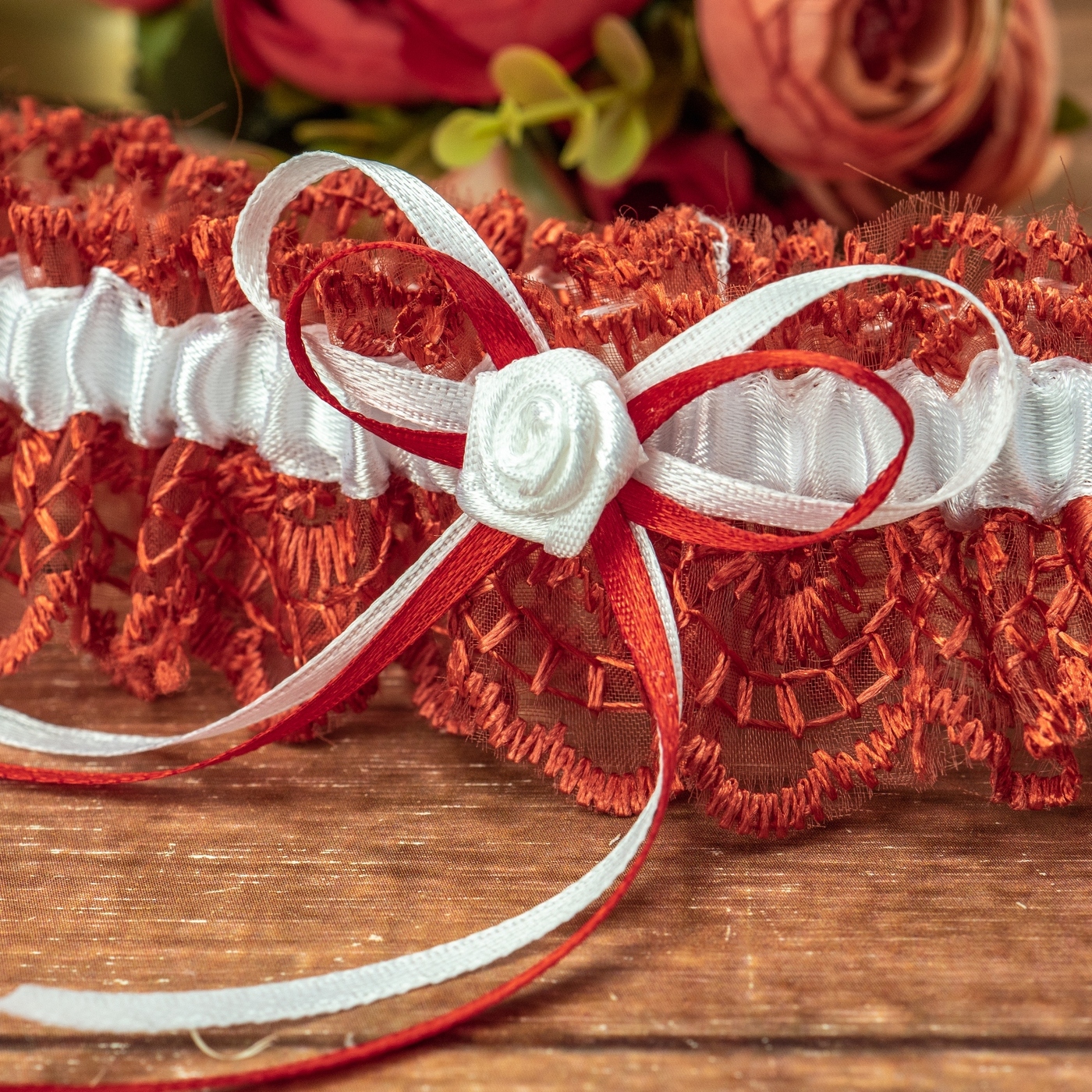 Комплектация:1 подвязкаОписание:Подвязка для невесты темно-красная с белой розой смотрится невероятно чувственно и стильно! Этот аксессуар выполнен из Атласной ленты белого цвета и красной широкой тесьмы, расшитой узорами. Подвязку украшает изящный бантик