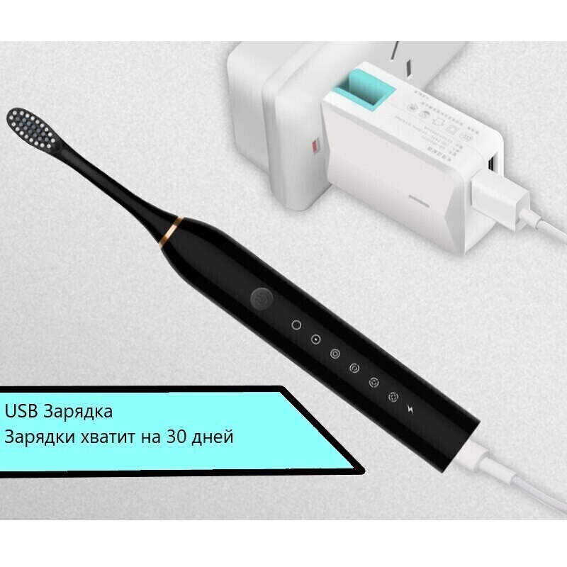 Комплектация:Зубная щетка электрическая + 4 сменные насадки, Зарядный кабель USBнасадка на электрическую зубную щетку, зубная щётка, электрощетка зубная, зубная щетка электрическая, зубная щетка дорожная, индикатор зубного налета, индикатор налета на зуба