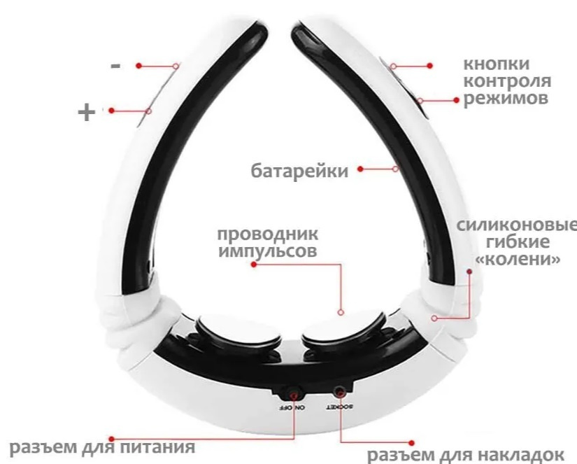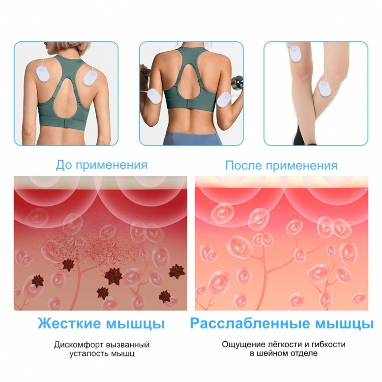 Способ применения:1. Вставьте 2шт AAA батареи в контроллер (есть в комплекте). 2. Поместите электродные прокладки на тело и подключите к устройству. 3. Нажмите кнопку «ON», чтобы включить массажёр, нажмите кнопку «MODE», чтобы выбрать режим. 4. Нажмите кн