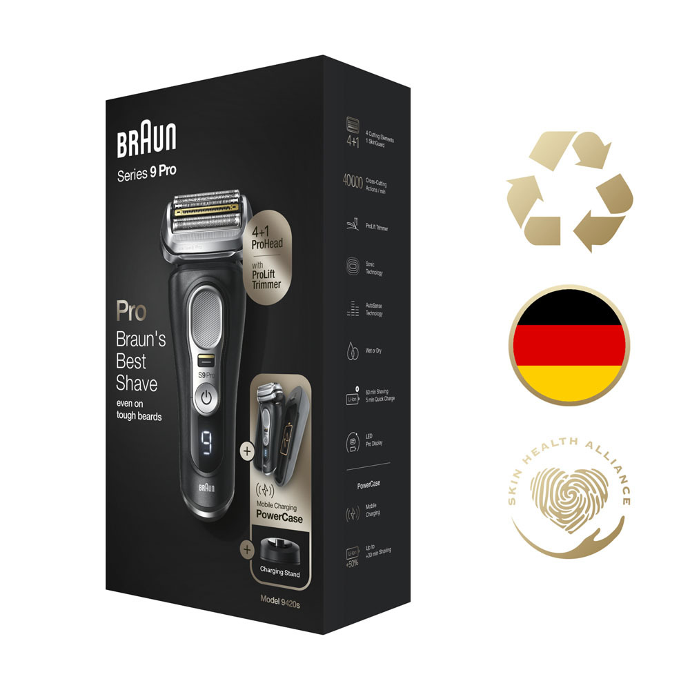 Комплектация:Электробритва Braun Series 9 Pro 9420s, зарядная станция, зарядное устройство SmartPlug, щеточка для чистки