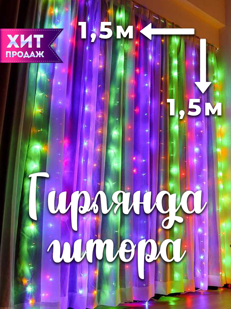 ГИРЛЯНДА ШТОРА 1.5х1.5 метра (1,5x1,5 м)160 LED, разноцветная, 8 режимов работы.Самый простой способ создать праздничное настроение – украсить помещение разноцветными огоньками.гирлянда штора 1,5х1,5 - это идеальный размер гирлянды для стандартного окна в