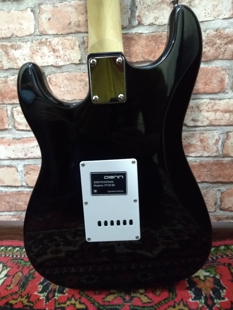 Электрогитара DENN ST100 BK в классическом дизайне и цвете - прекрасный выбор для начинающего гитариста. Корпус электрогитары, выполненный из платанового дерева, обладает ярким звучанием, а тонкий кленовый гриф "U"-образного профиля будет удобен для комфо